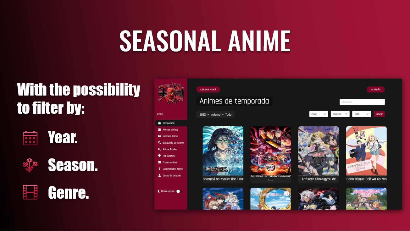 - Anime News: With the possibility of filtering by different types of news and searching for them according to a keyword.