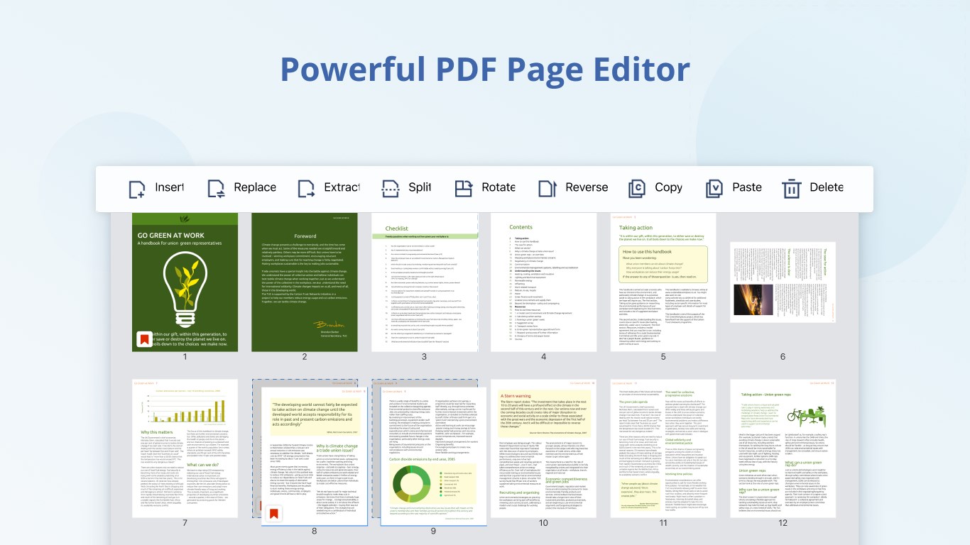 • Edit PDF pages: Organize PDF pages freely, including rearranging, deleting, inserting, inserting, rotating, replacing and more.