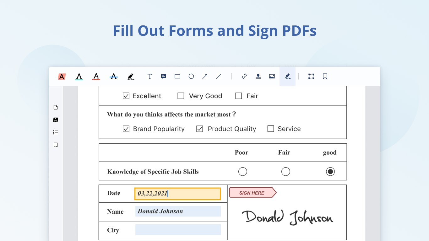 PDF Reader Pro is an easy-to-use PDF form creator & filler. Effortlessly fill out PDF forms and sign PDFs with keyboard, trackpad or picture on any Windows device. No need for a printer or pen, enjoy a smooth filling and signing experience.