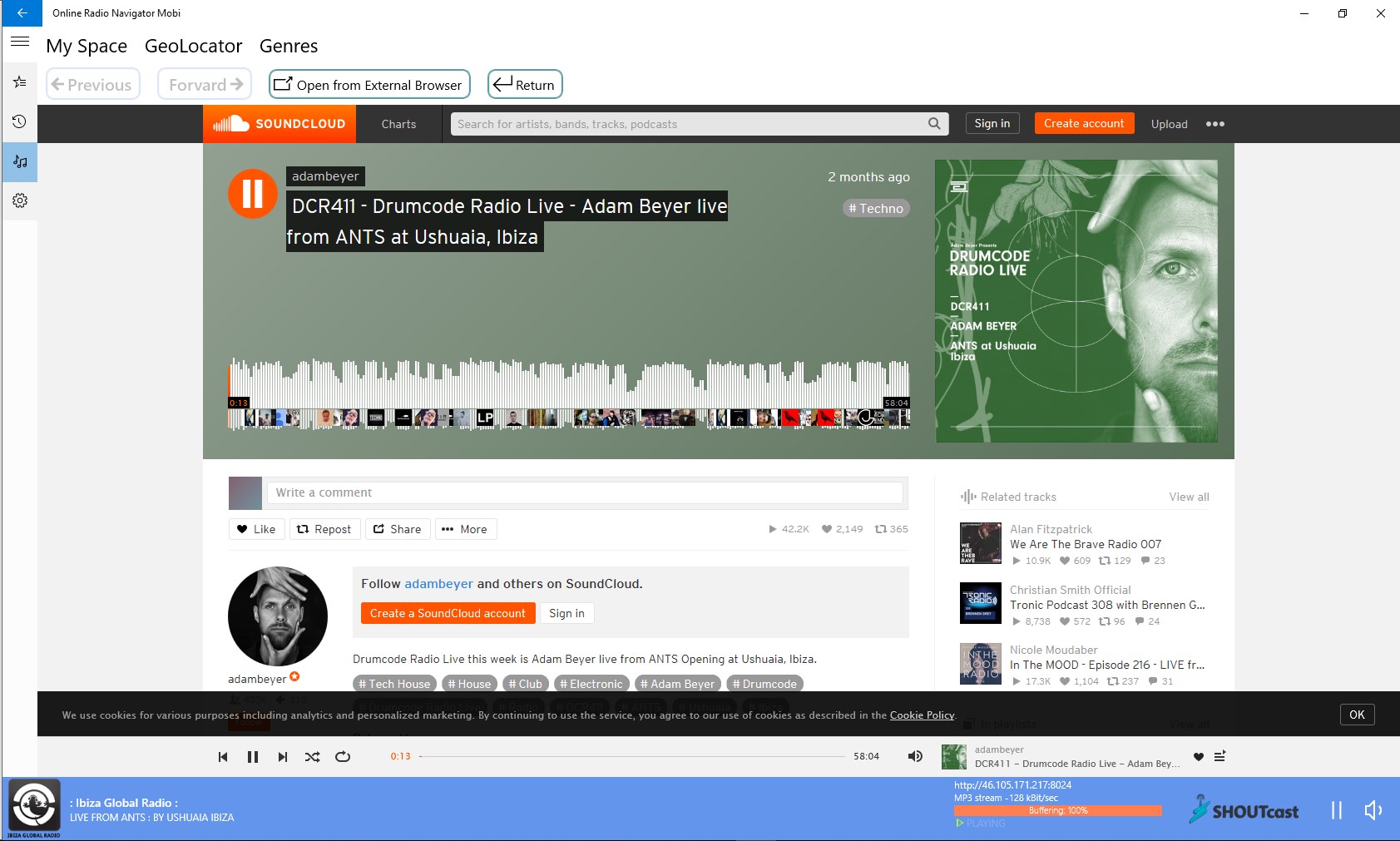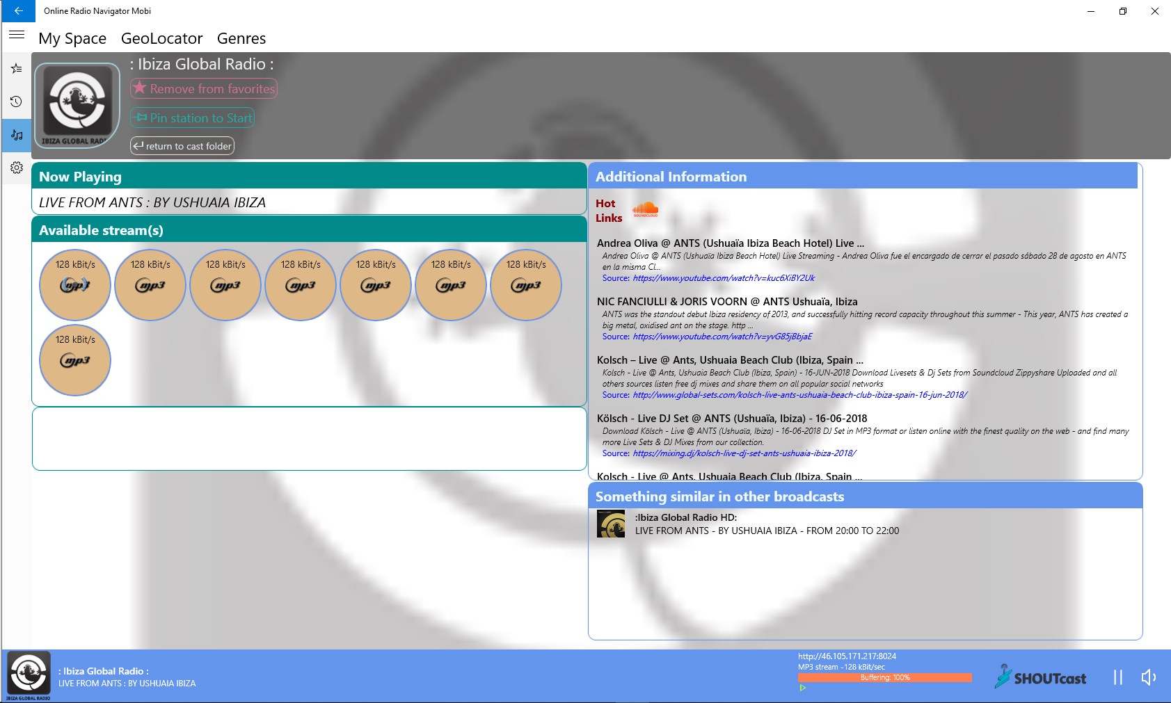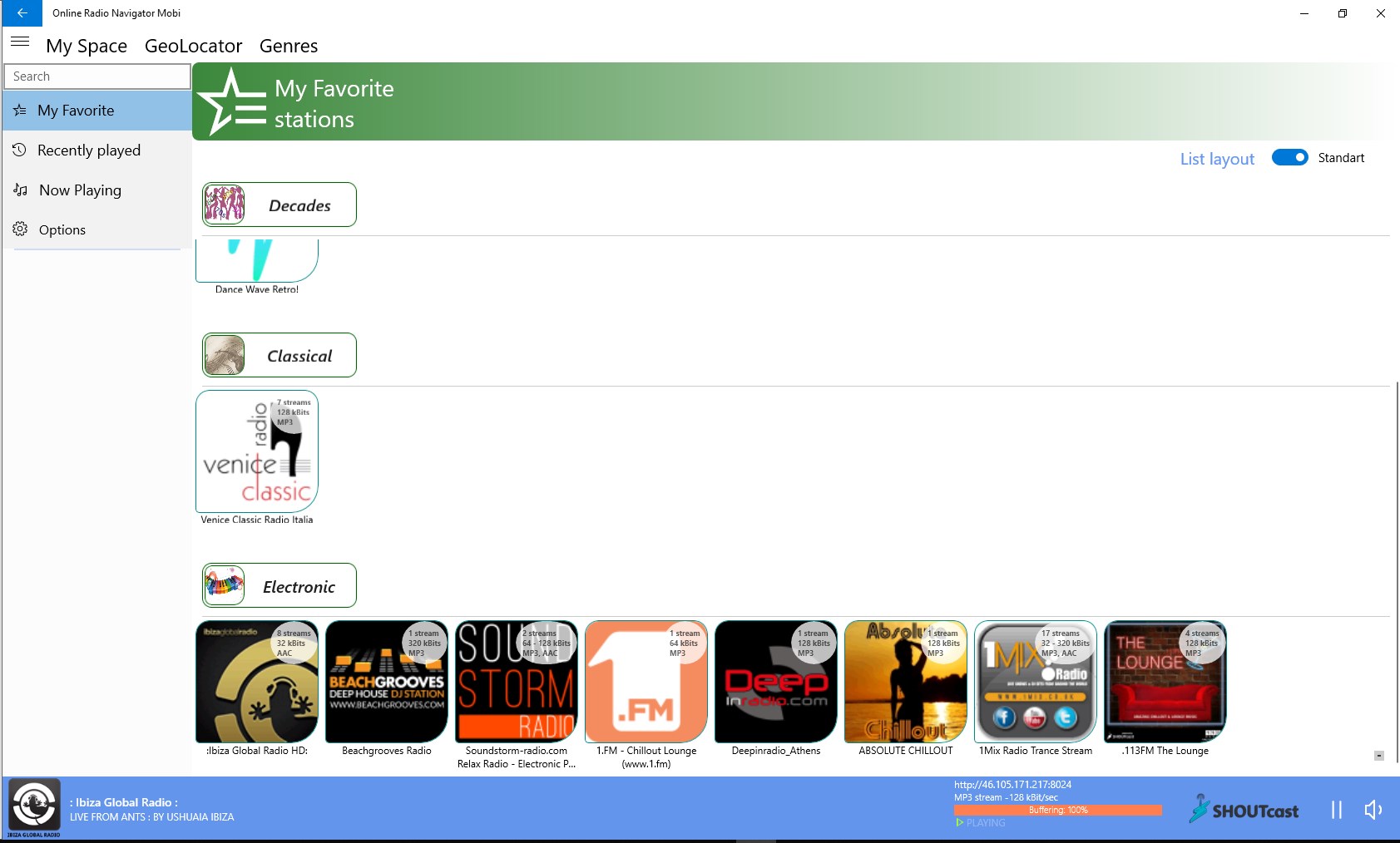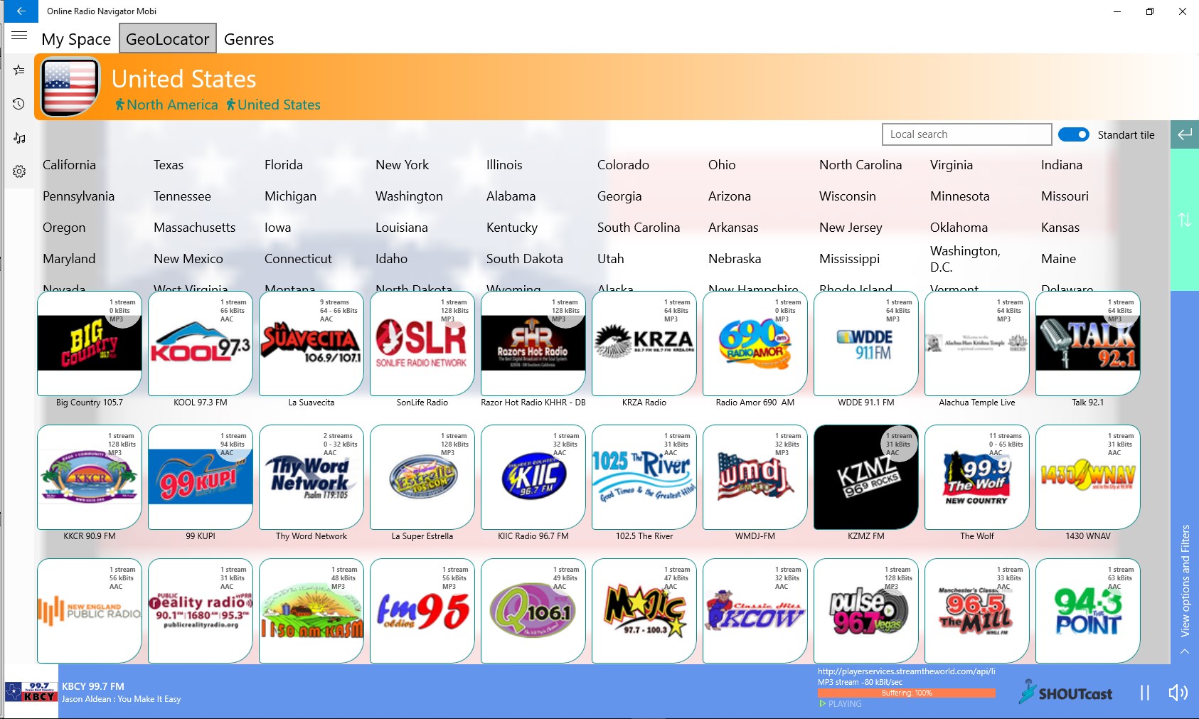 Online Radio player> 100,000 active stations, all countries of the world15,000 genres, castes, geo-referrals