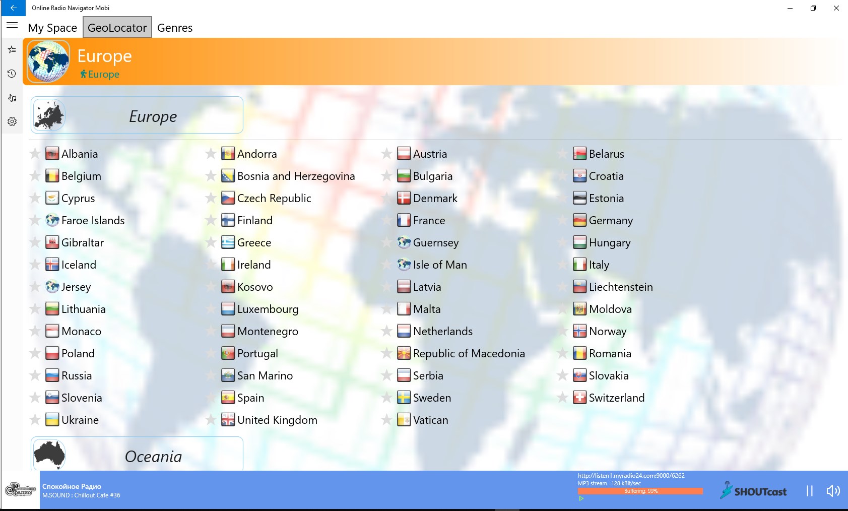 • GeoLocator section - a large catalog of stations, divided by geographic references: Continents-Countries-Regions.