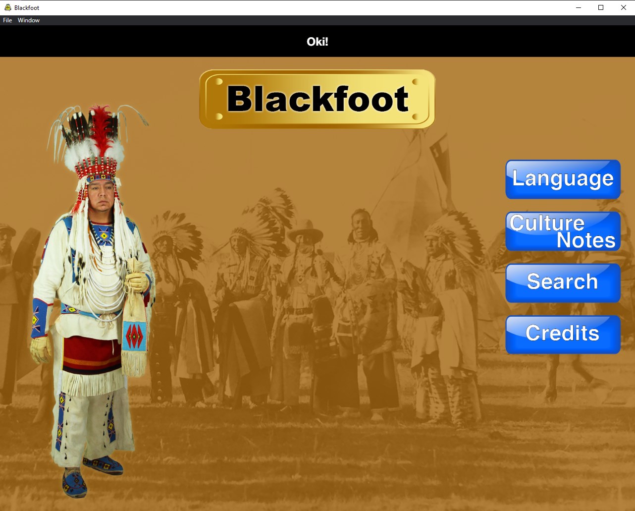 The Siksika (Blackfoot) Nation located in southern Alberta, Canada is elated to announce a “Blackfoot App” to facilitate the learning of Siksika (Blackfoot) phrases organized under 29 theme categories complete with audio, images, quizzes, and games. Also included in the app is a cultural section of historical images; a short sign language video; and a variety of songs including owl dance songs, hand game songs, lullabies, and word songs to supplement the phrase categories. This work is a collaboration between the local tribal college, Old Sun Community College, and the Siksika Board of Education.