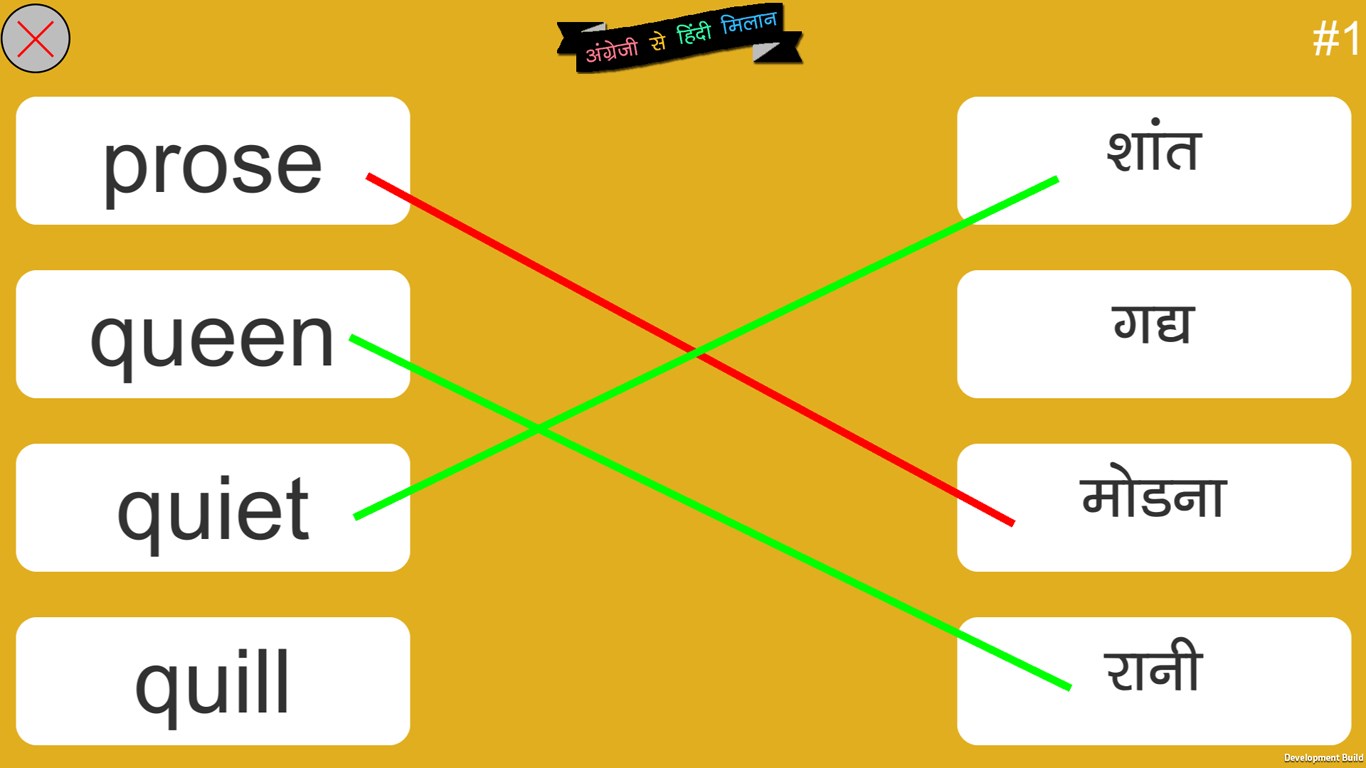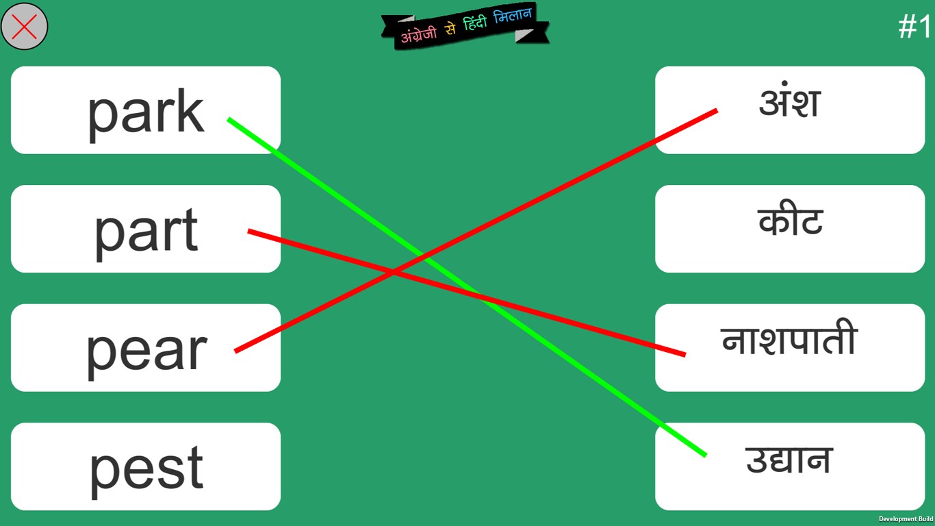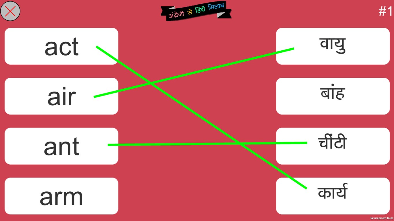 You just need to use your finger to draw line and match the English word with its Hindi meaning. You need to match all the 5 words to move next level.