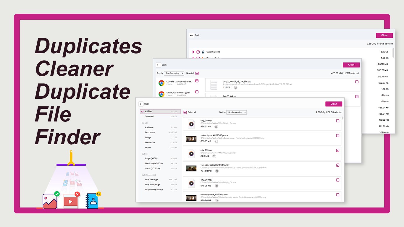 Effortlessly remove identical files and free up storage space on your system with our Duplicates Cleaner.
