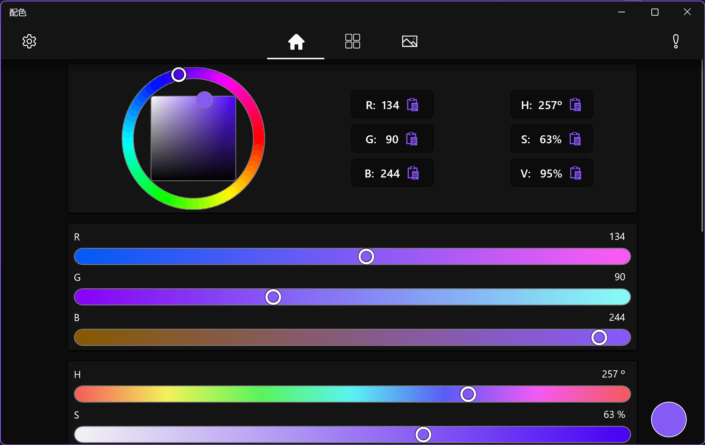 Used to select the color application, support the hexadecimal color, support the RGB an HSV toning, support choose color from the Bitmap.