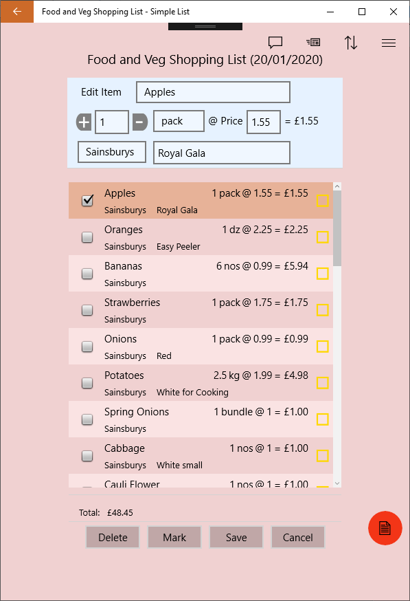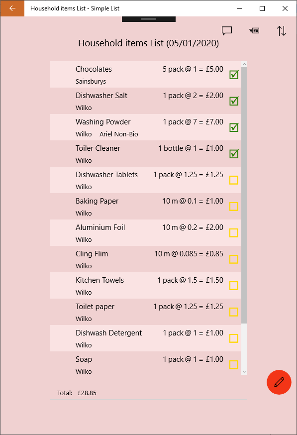The list can also be used in Display mode which allows you to mark items as Pending or Completed or Not Available, to help you on the go while shopping.