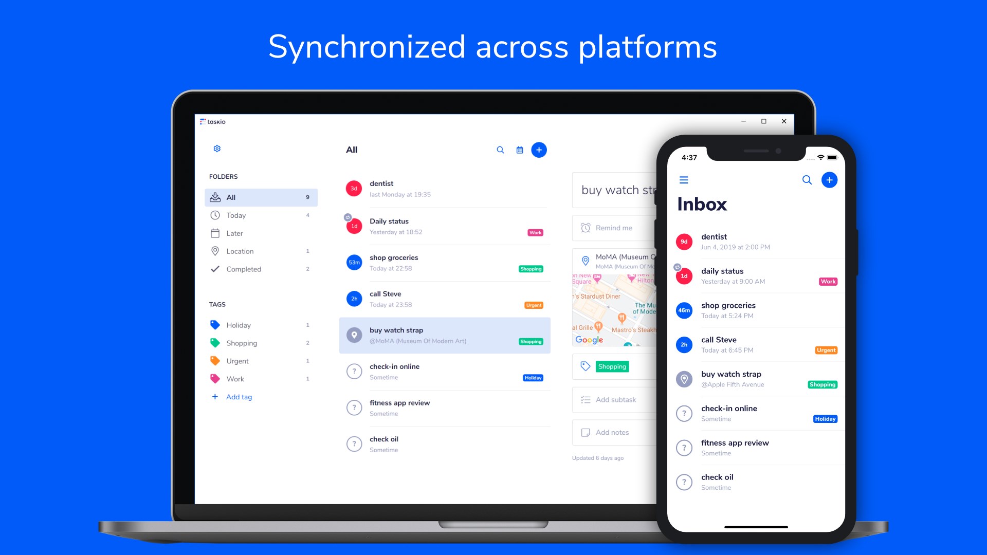 - Seamless cloud sync - We'll backup your tasks at safe place. You can come back to them any time you want.
