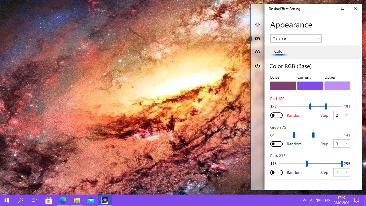 Creates a taskbar with a constantly and smoothly changing color.