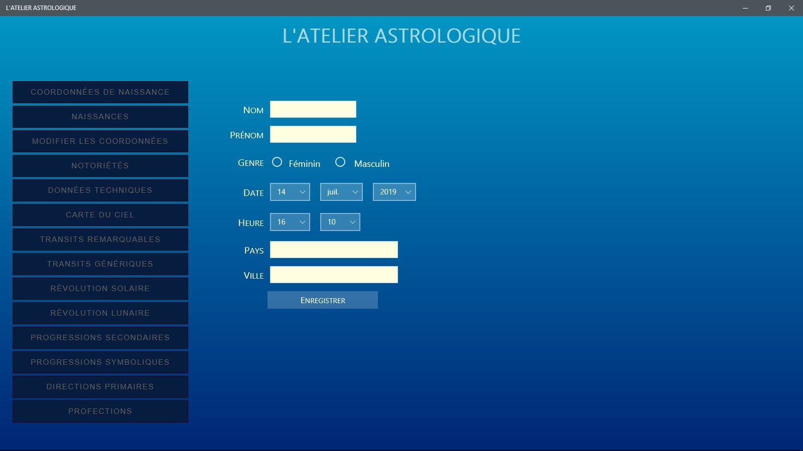 L'« ATELIER ASTRO » (aussi appelé « Astro Studio ») a été spécialement conçu pour les astrologues ou pour les étudiants en Astrologie qui souhaitent s'affranchir des calculs rébarbatifs imposés par cet apprentissage.
