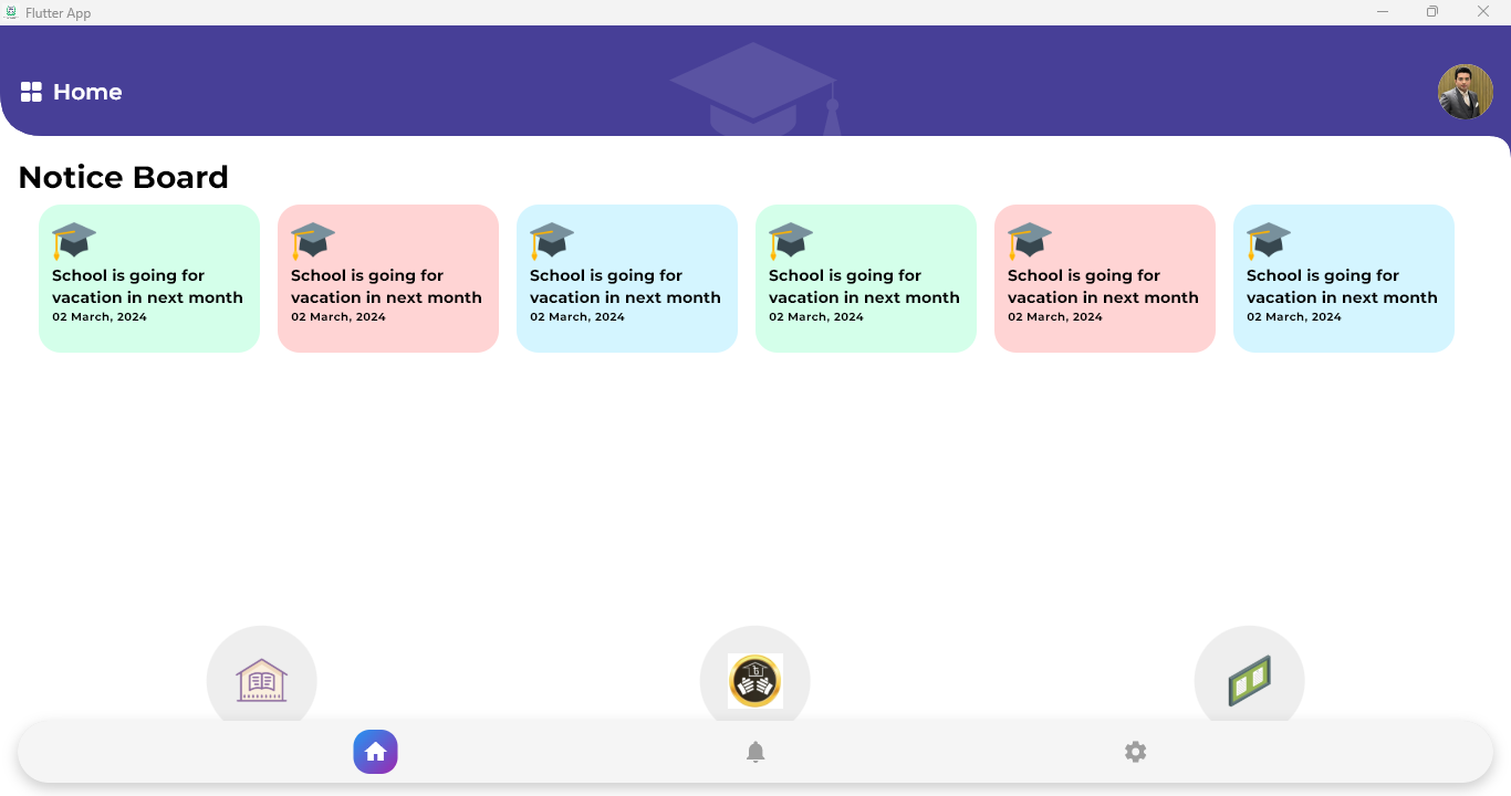 This is an educational application where students can see videos. Students can see fee details and notifications. There is also a dark and light mood.
