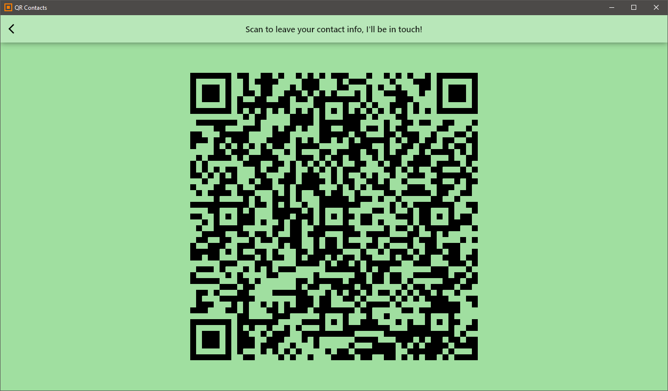Whether you are a salesperson on a fair booth or a real estate agent showing a property, this app provides a fun and easy way for visitors to leave their contact info: just by pointing their smartphone camera on a QR code you present, they are brought to a simple web form where they can enter their name, email-address, phone number and/or message for you. QR Contacts can also be used for collecting feedback or even as a futuristic guest book.