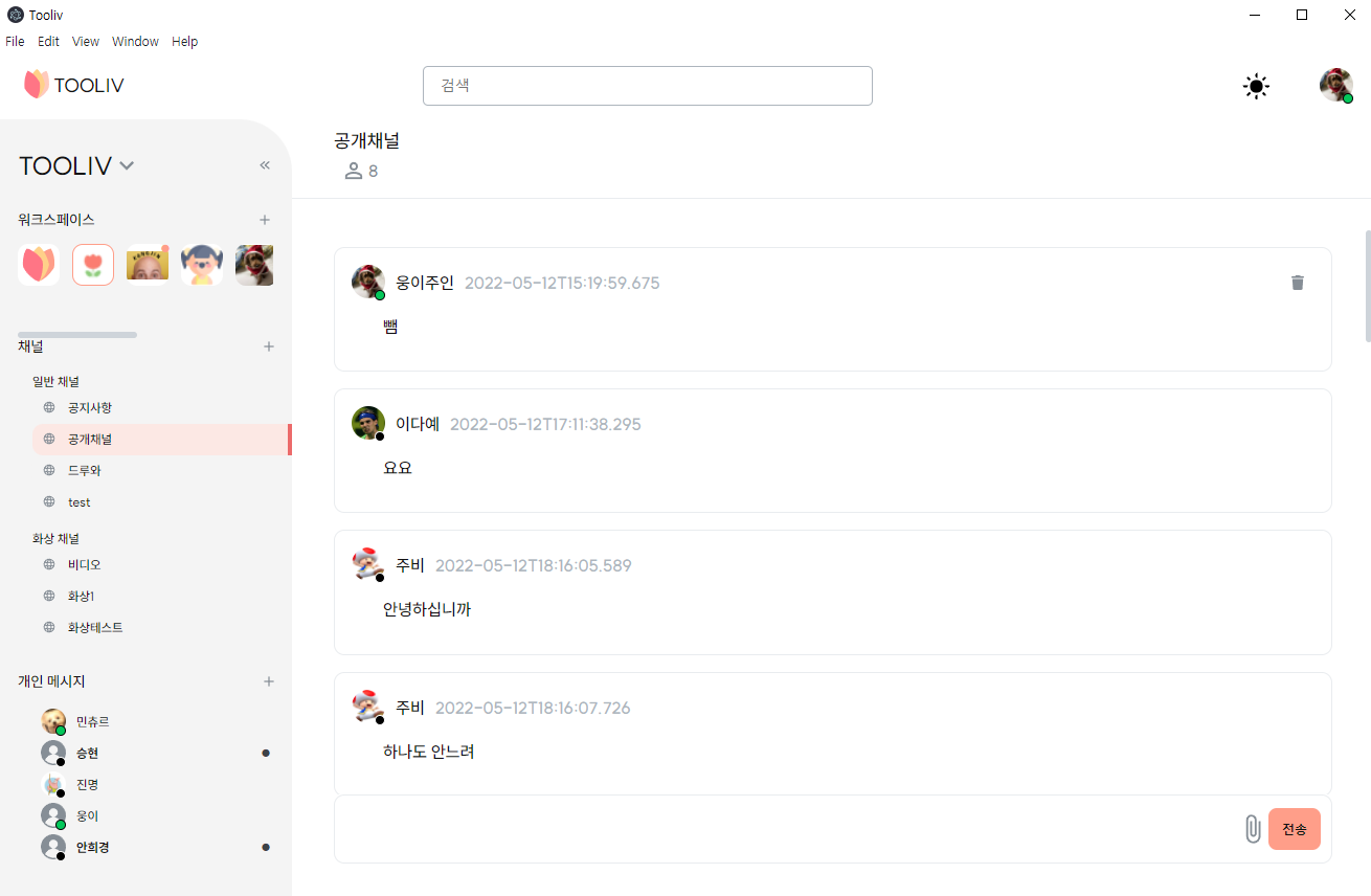 단체 채팅일대일 채팅다중 화상 회의