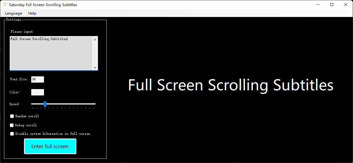 A small tool that can scroll text in full screen. Support setting text size, color, scroll speed.