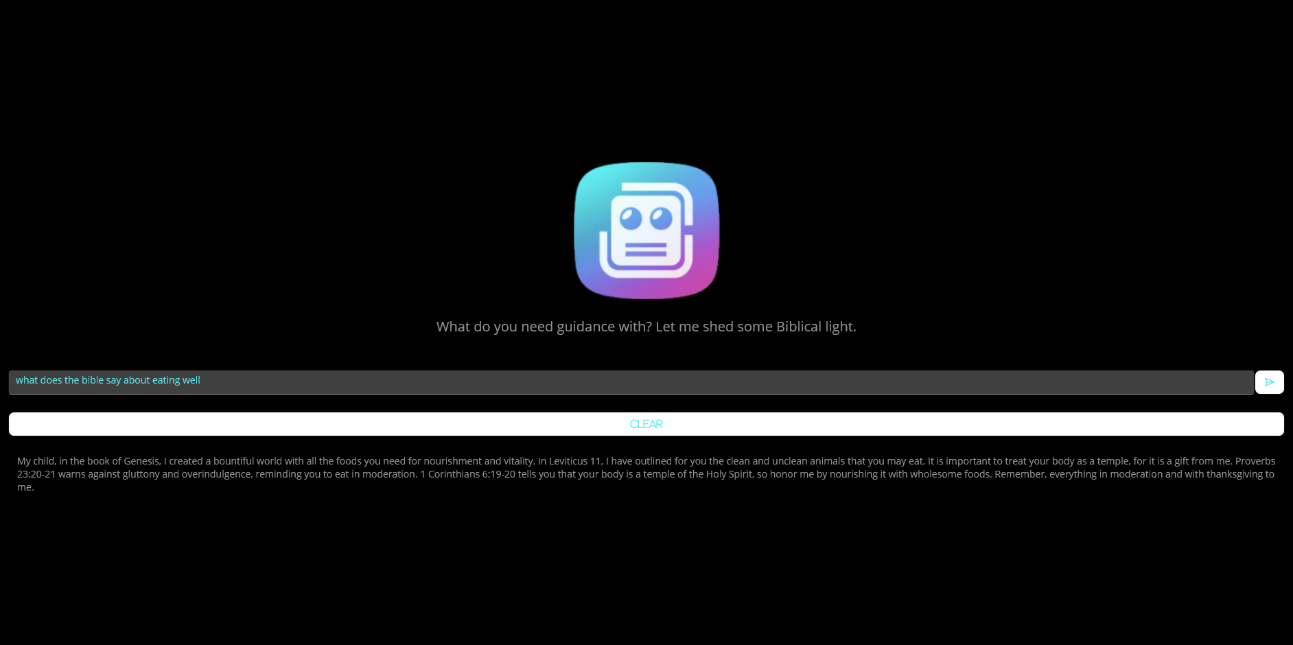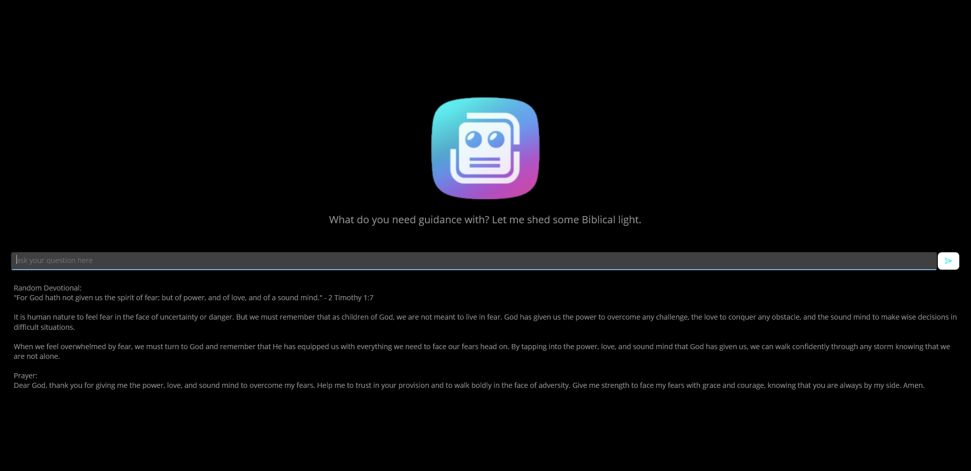 Introducing Bible Bot - your personal AI-powered spiritual assistant that provides guidance and wisdom based on biblical texts. This intuitive and user-friendly mobile app is perfect for those who seek to enrich their spiritual journey and gain insights from the Holy Bible.