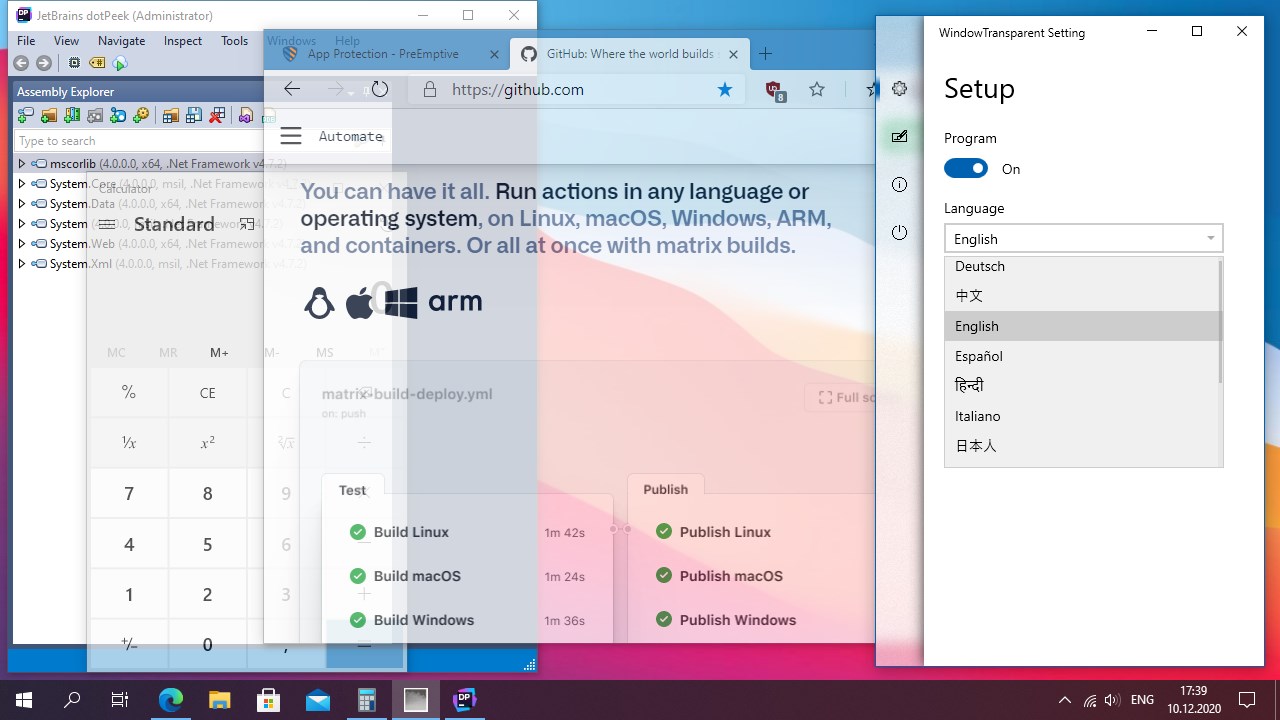 Sets individual transparency in Z-order for windows of different applications.