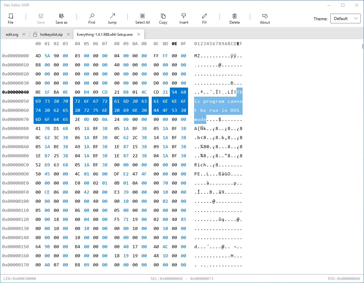 This is an UWP version of the hexadecimal editor, stable, fast and safe.