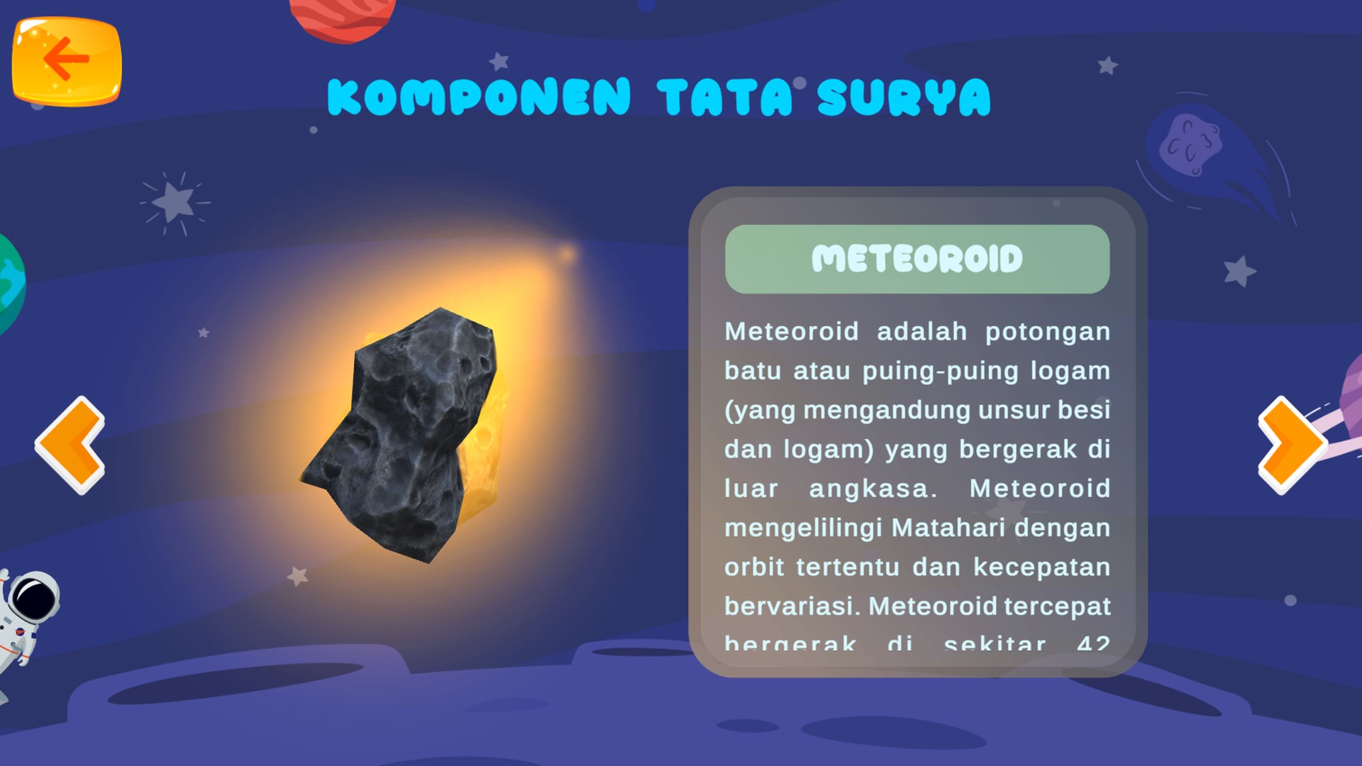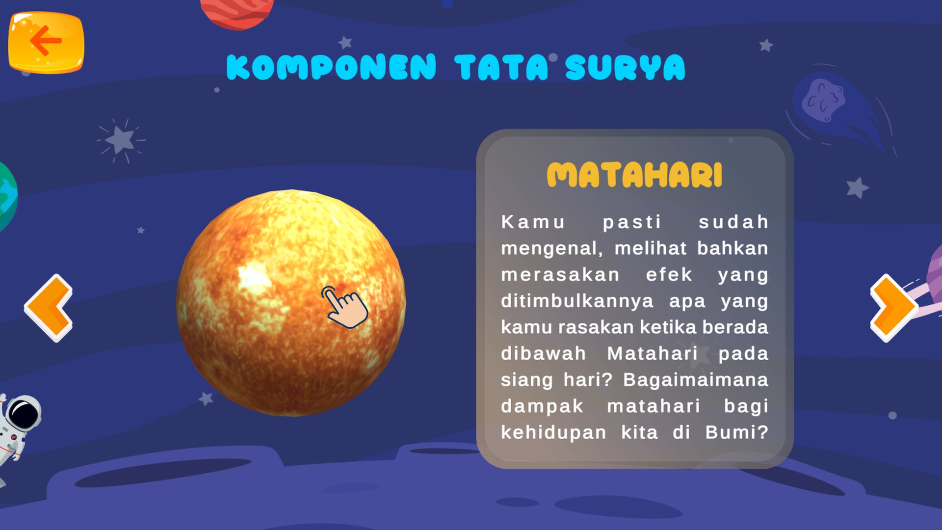 Aplikasi Planet Tata Surya 3D berisi materi belajar mengenal Tata Surya mulai dari Matahari, Planet, Satelit, dan juga Benda Langit. Aplikasi disajikan dalam tampilan yang menarik dengan visualisasi 3 Dimensi. Selain itu terdapat simulasi susunan dan pergerakan planet dalam tata surya. Sehingga lebih menarik dan mudah dipahami