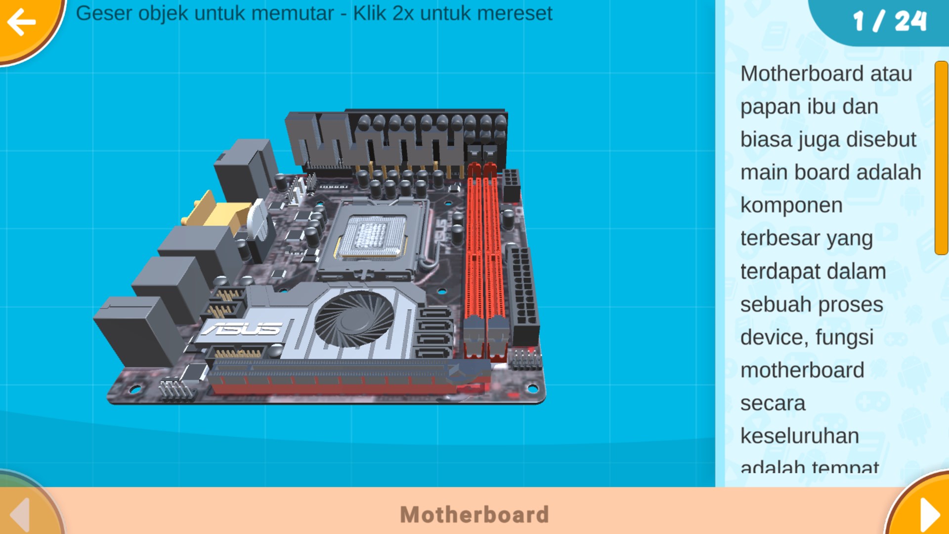 Aplikasi belajar mengenal berbagai komponen komputer. Terdapat 20 lebih komponen komputer yang bisa di pelajari