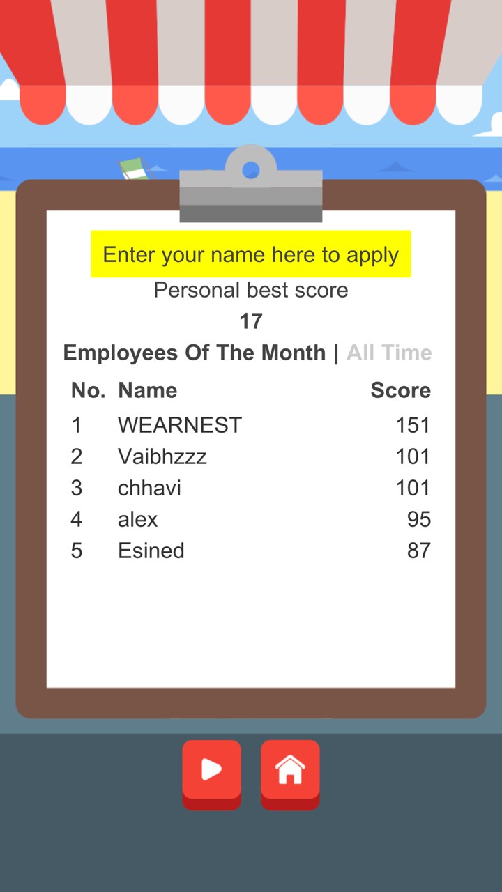 Feeling competitive? The leaderboard is just for you. Apply for employee of the month and see how you rank against other players. Do you think you’ve got what it takes to be at the top of the leaderboard? Well, let’s see...
