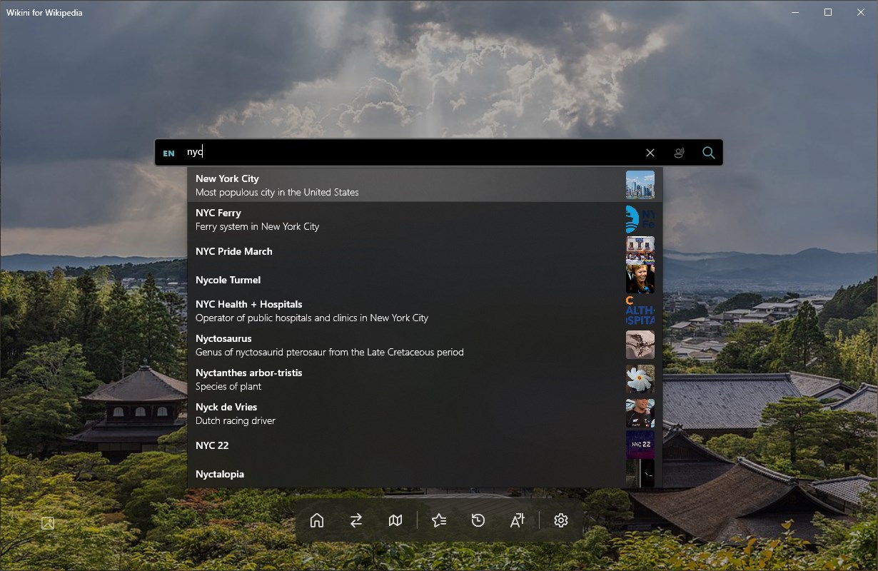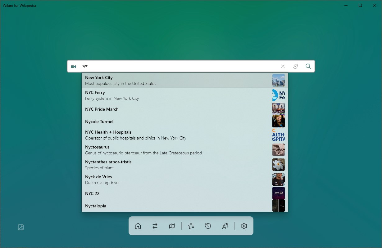 Wikini is the perfect app for everyone who regularly uses Wikipedia. No matter if you want to look something up, learn something new or just lose yourself in the huge amount of articles: Wikini is there for you!