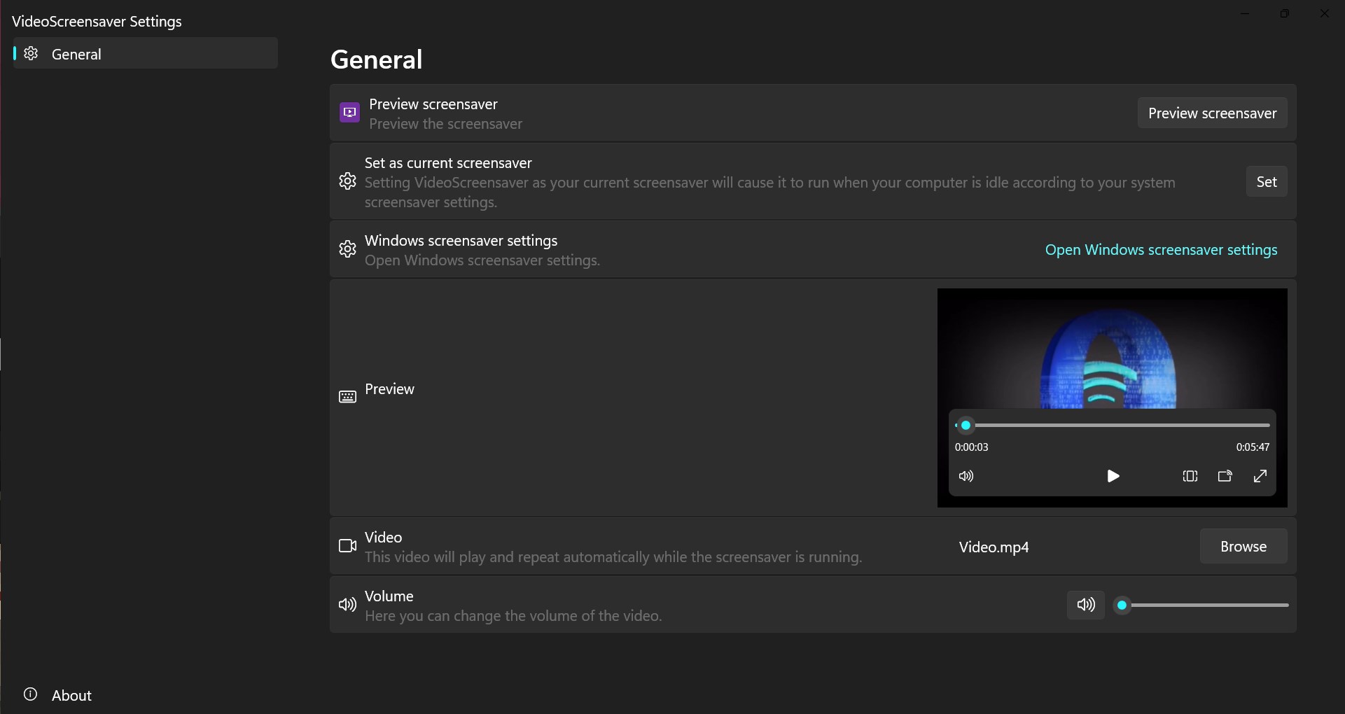 Set a video as your screensaverIntegrates with Windows screensaver settingsSet the volume of the videoScreensaver displays on all monitorsFor advanced users, run the screensaver with the \'quinnscomputing-videoscreensaverrunner:\' protocol