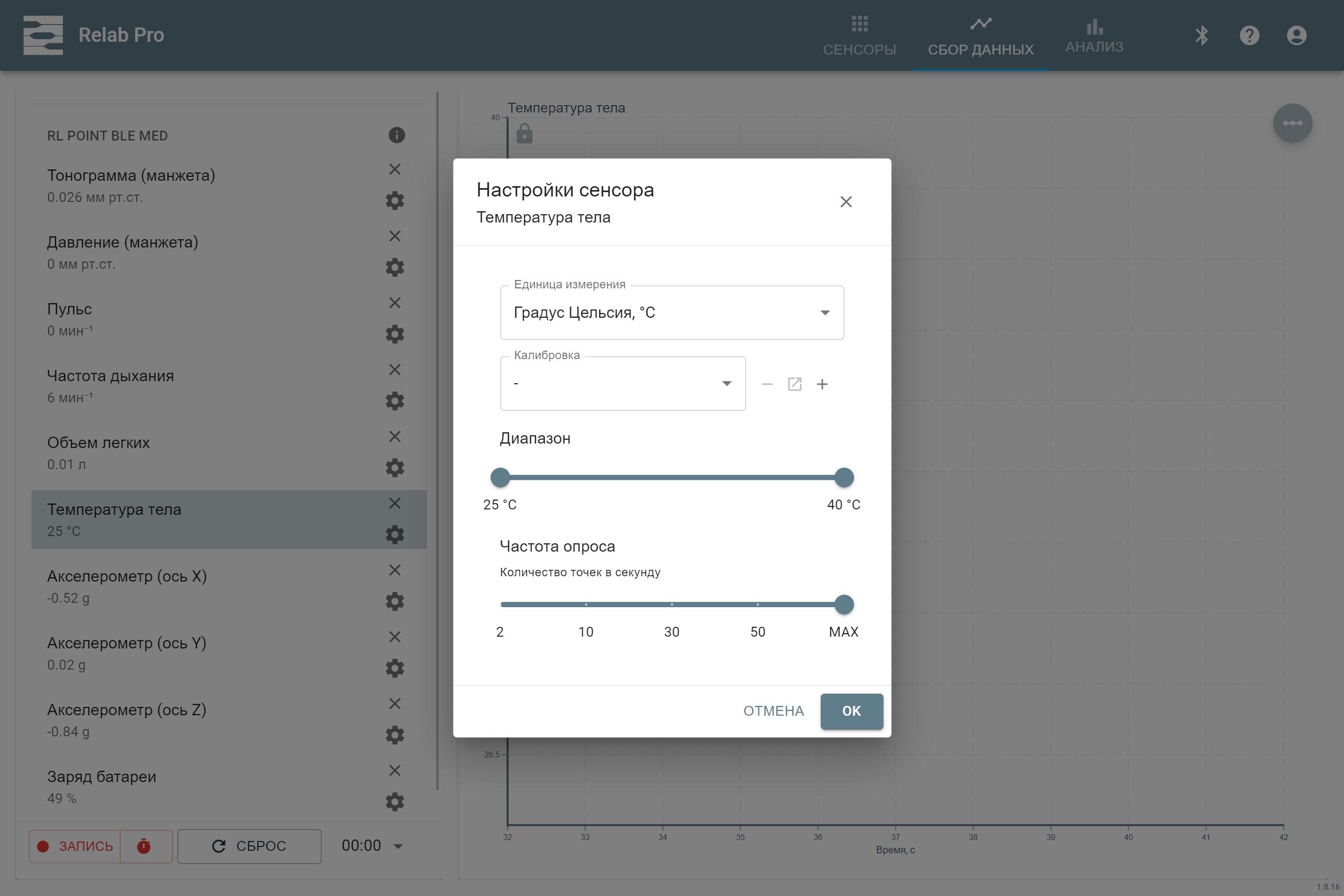 Приложение для работы с датчиками Relab