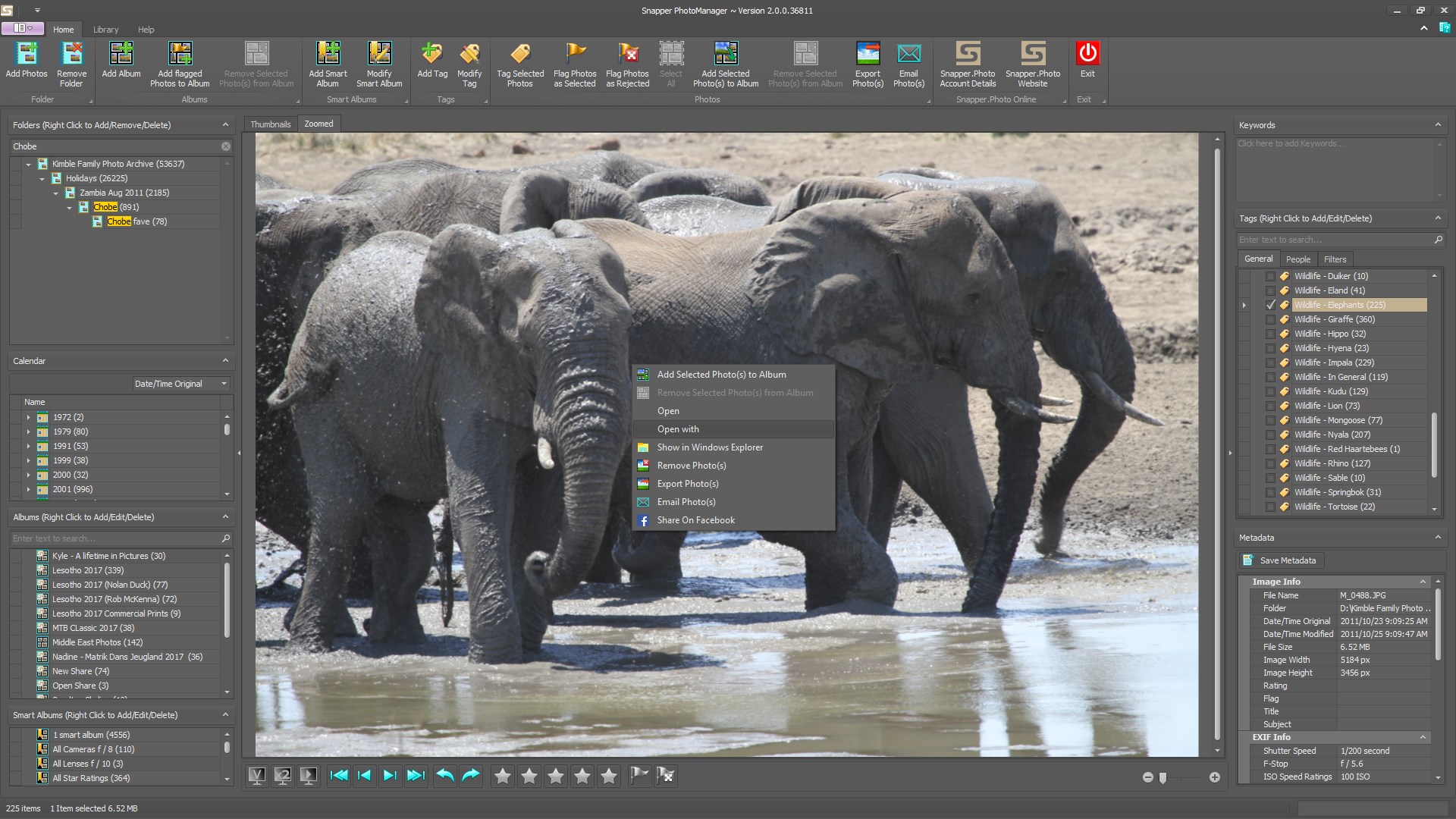 Snapper PhotoManager is truly scalable. Whether you have just a few hundred photos or more than a million, you will be amazed how easily you can find that special photo. You can even connect a mobile phone or tablet (iPhone or Android) and import these photos. There is no need to lose another photo ever again.