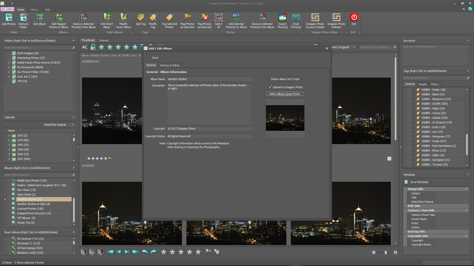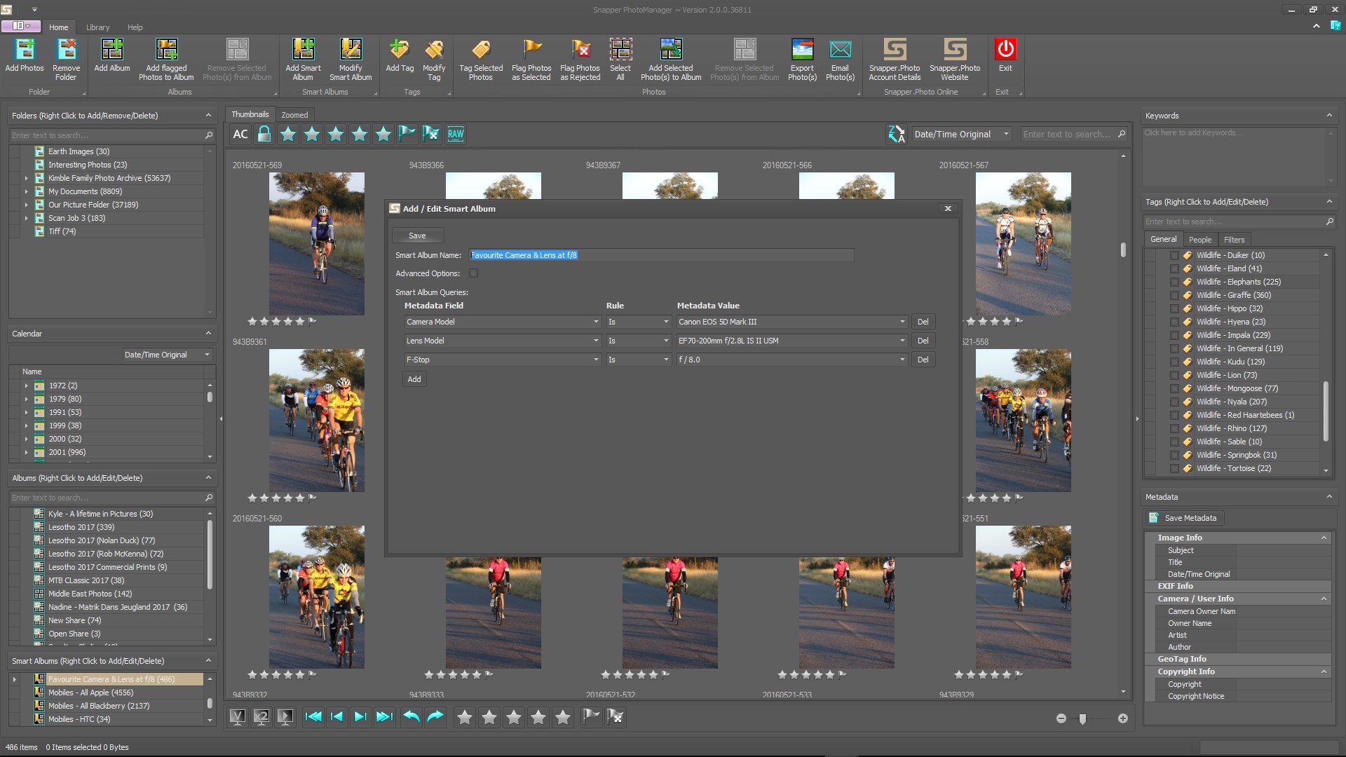 Create unlimited General Tags & People Tags, unlimited Albums & Smart Albums. Add keywords