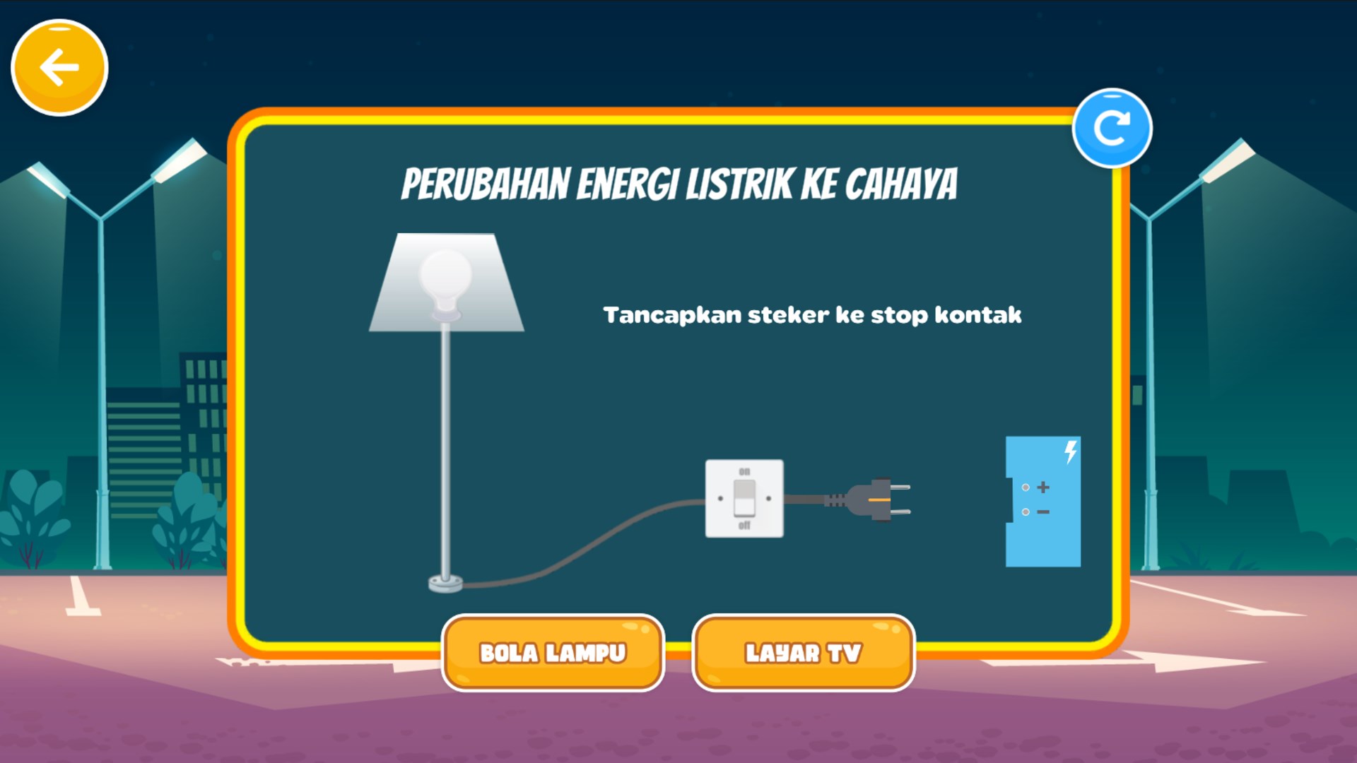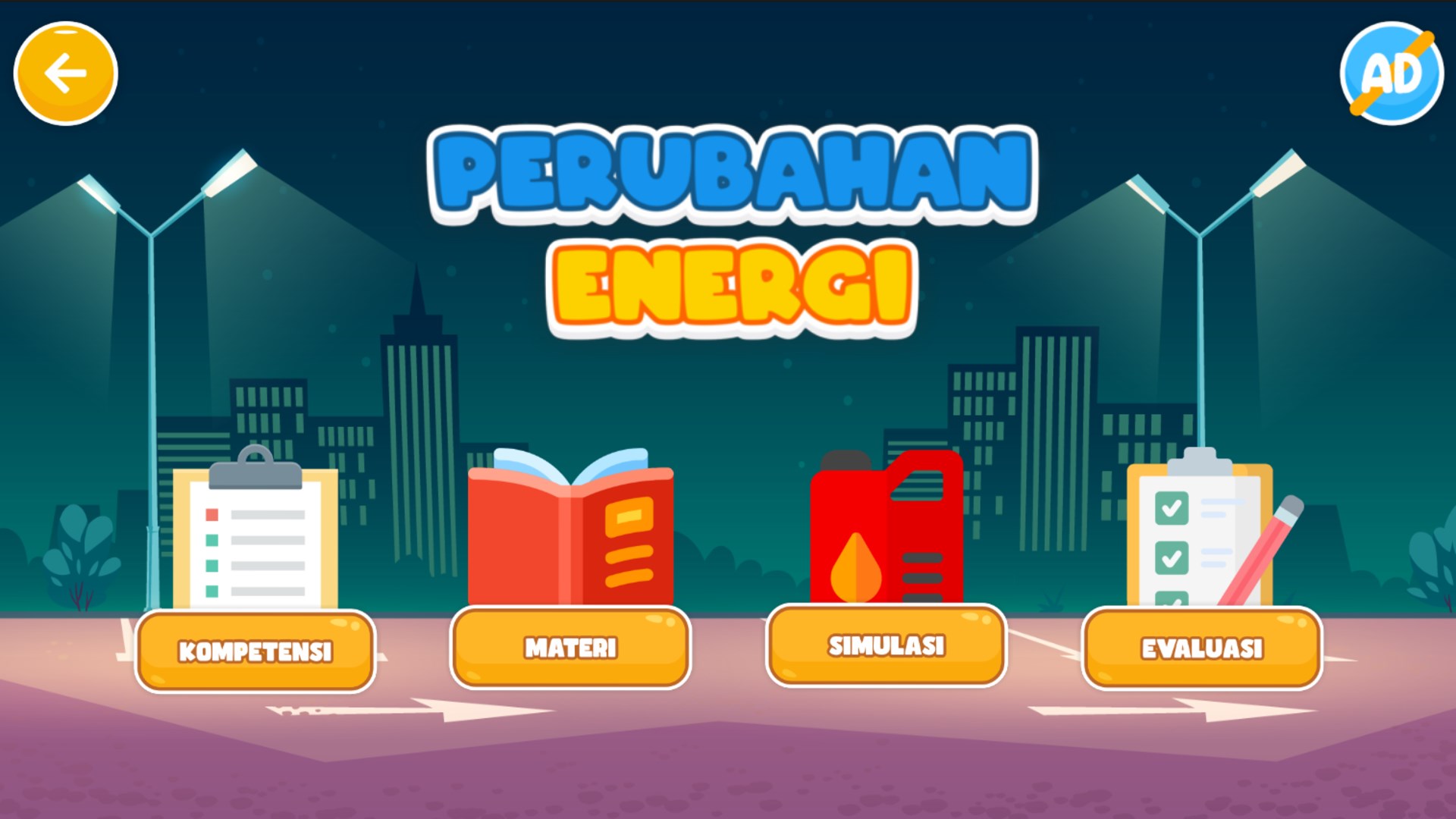 Aplikasi ini membahas tentang macam-macam energi dan juga beberapa contoh perubahan energi yang disajikan dengan animasi dan simulasi interaktif.