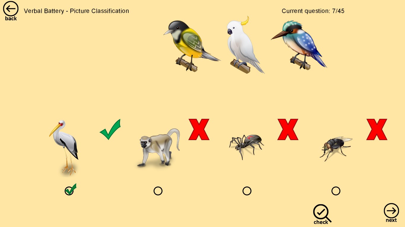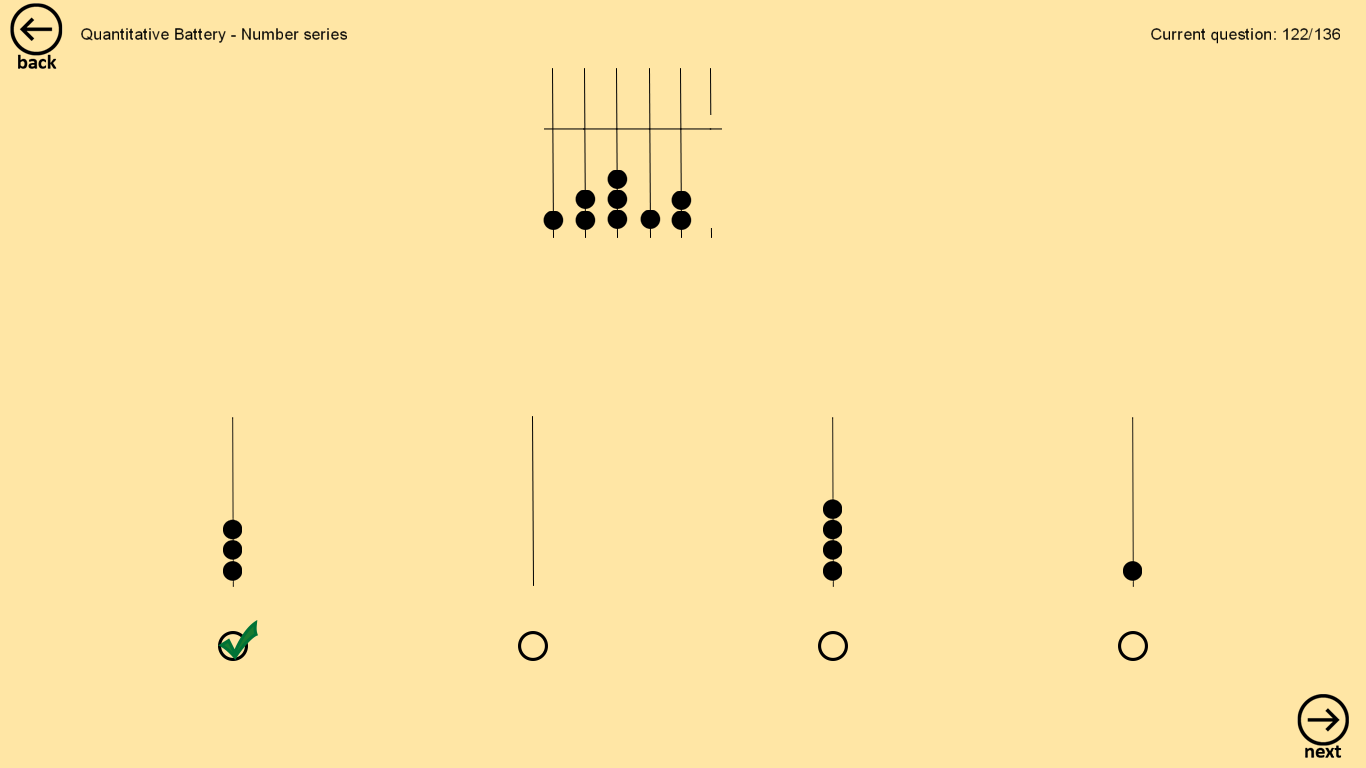Major part of the app is test where you can choose quick test (with 45 questions) or full test (with 136 questions).