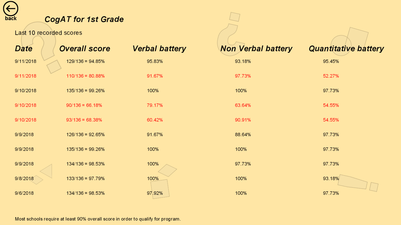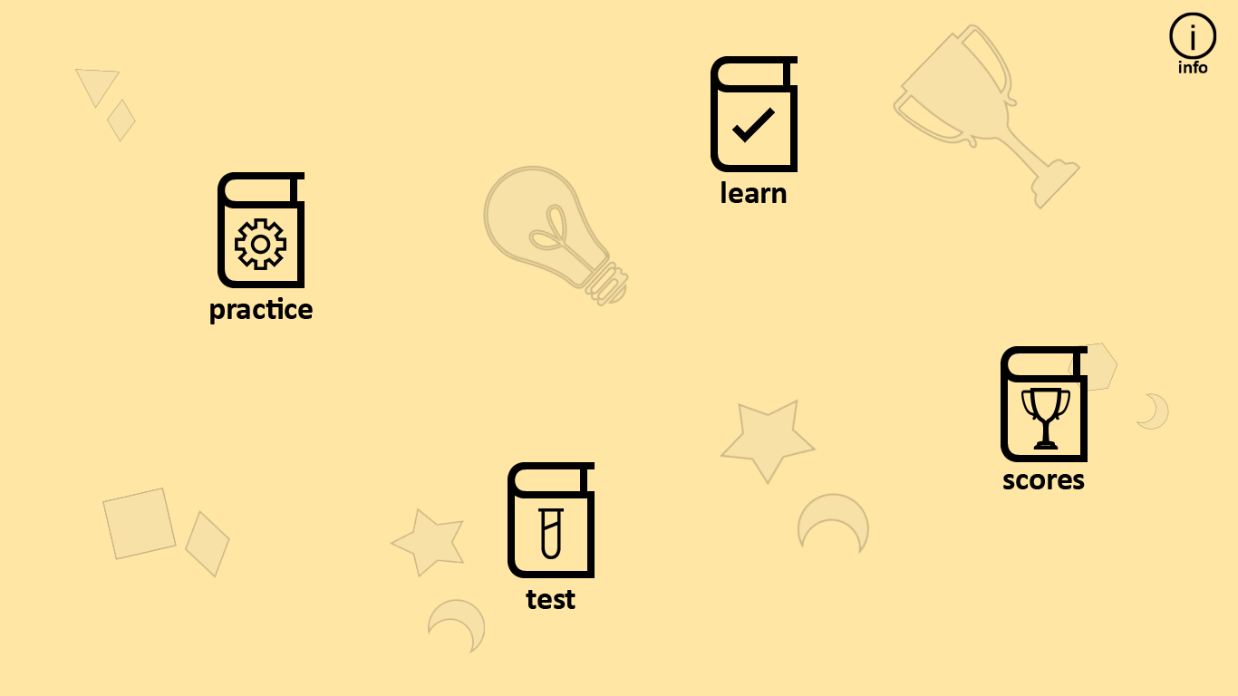Practice mode - select areas you want to focus, and check answers while practicing, see results when doneTest mode - select short or full test, see results when test is doneScores - see details on results for last 10 completed full length tests