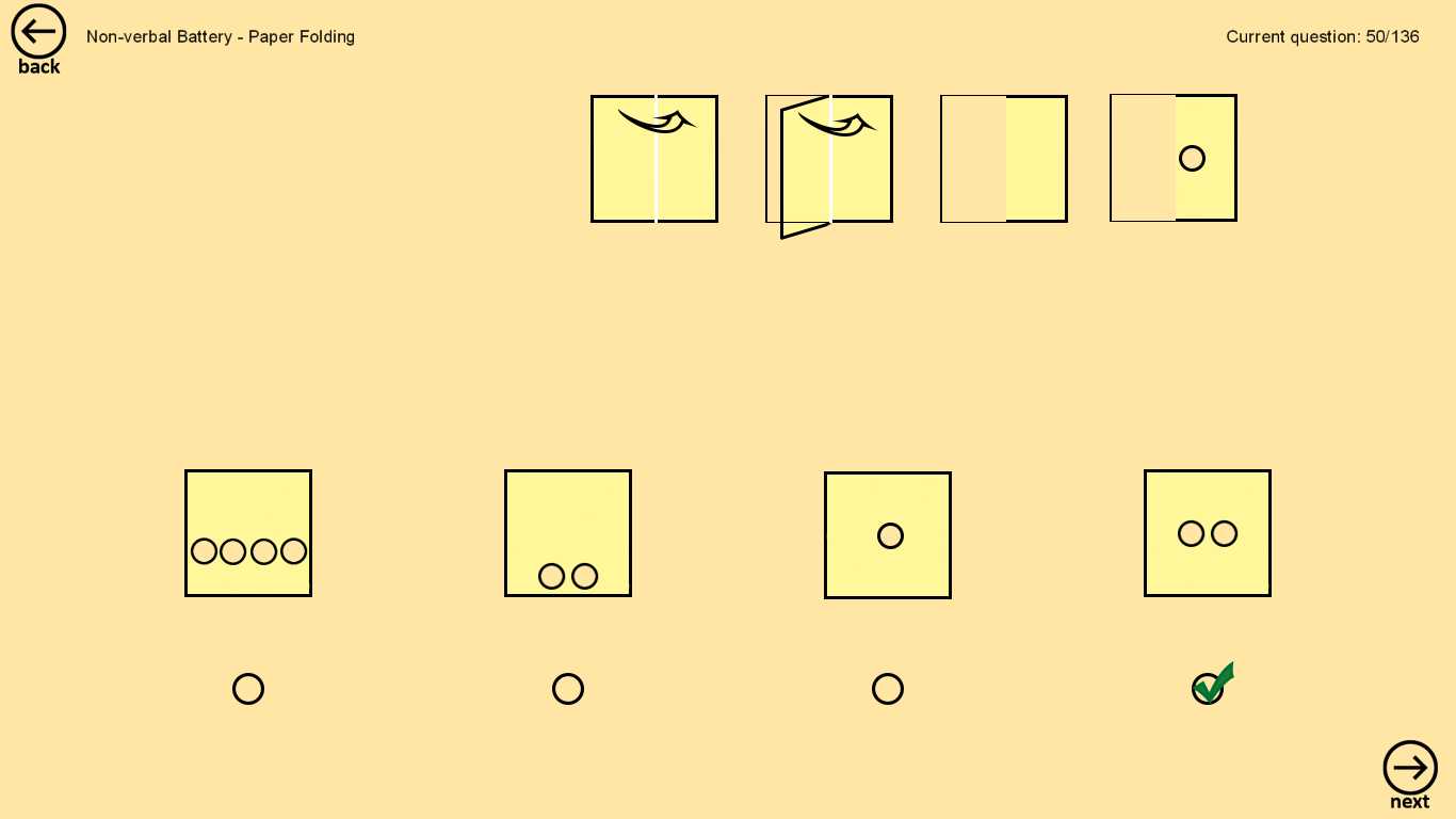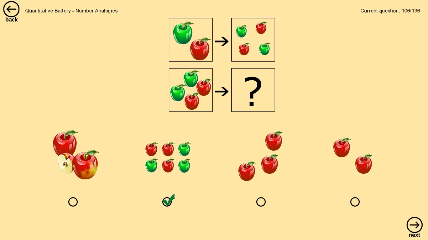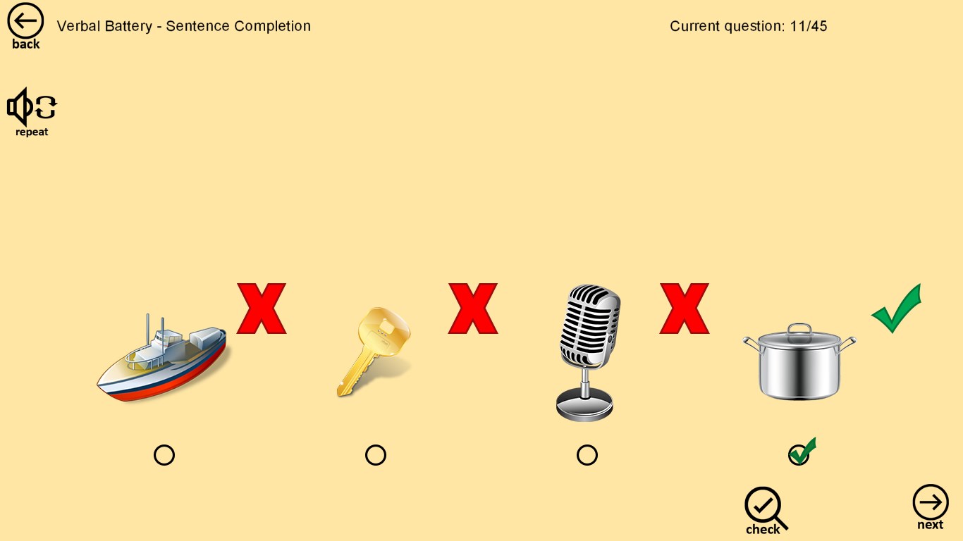 CogAT format: listen to the task/question and select an answer out of multiple choices provided.