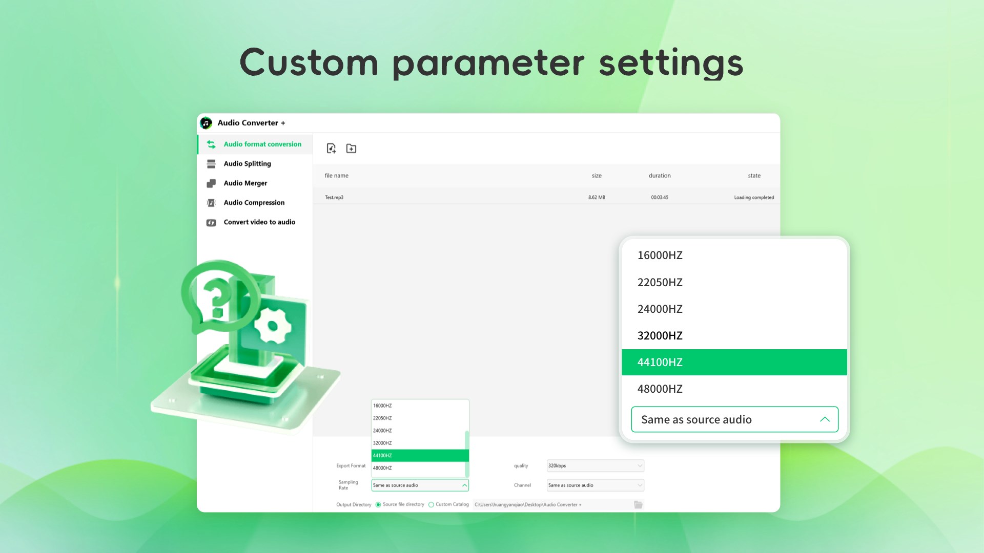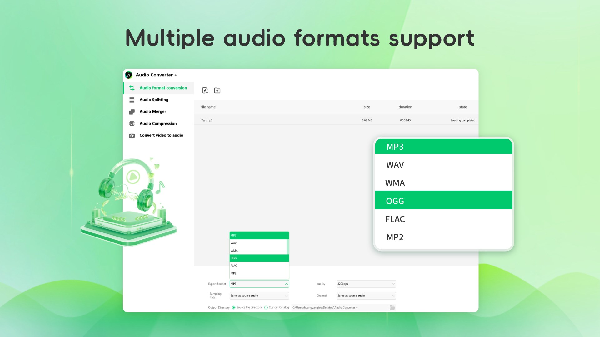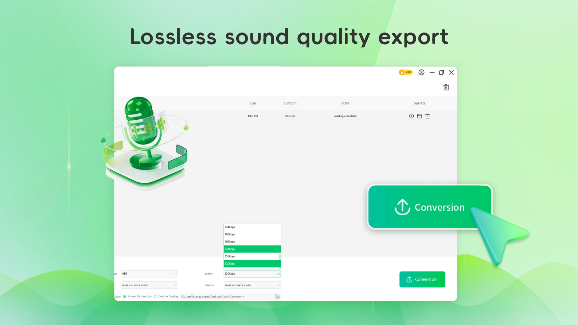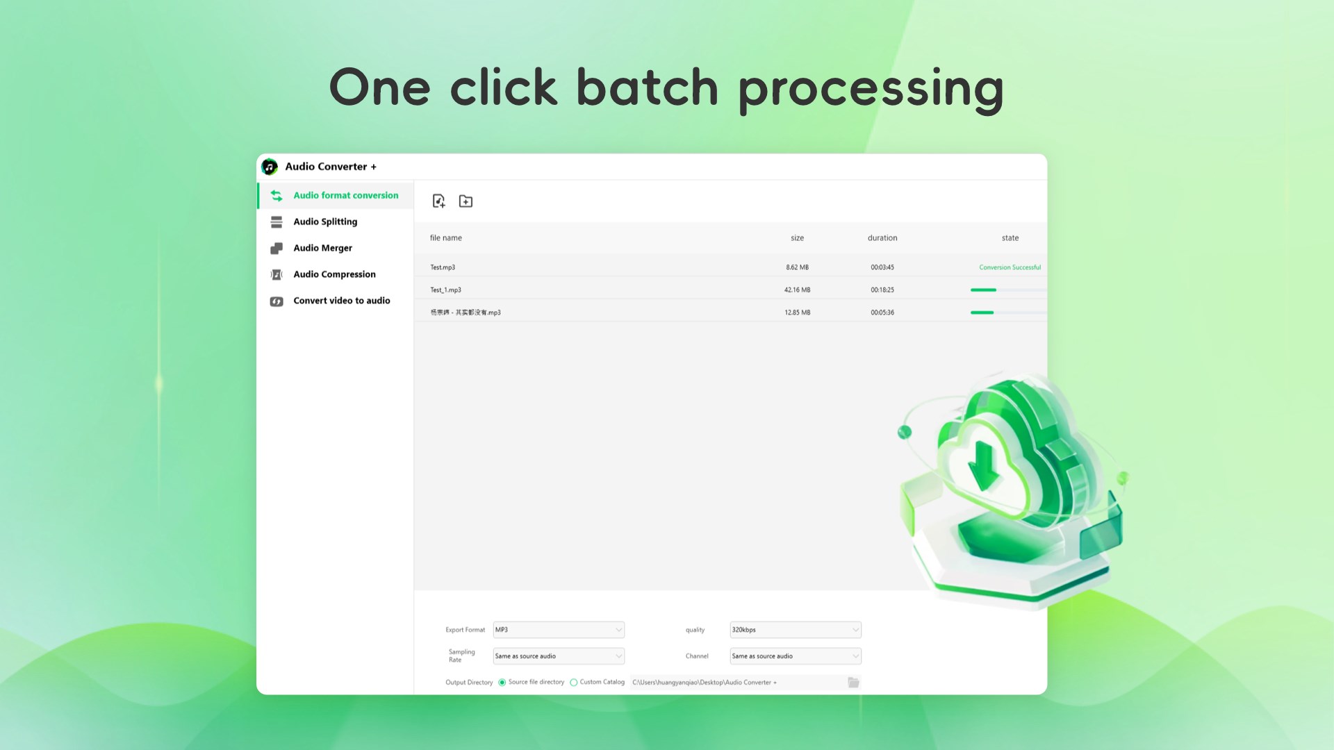 This is a portable and easy-to-operate audio format converter that supports conversion of multiple audio formats. Before converting the audio format file, you can make some custom settings for the audio file parameters to convert it into a high-quality audio file that you are satisfied with; at the same time, this audio format converter can be used offline, uploaded locally, and converted locally. Worry about interruption of conversion due to network problems. This is our first-generation audio format converter. The goal is to become a format factory in the audio conversion industry. If you have any comments or ideas, you can send an email to [email protected], and let's run towards the goal together!