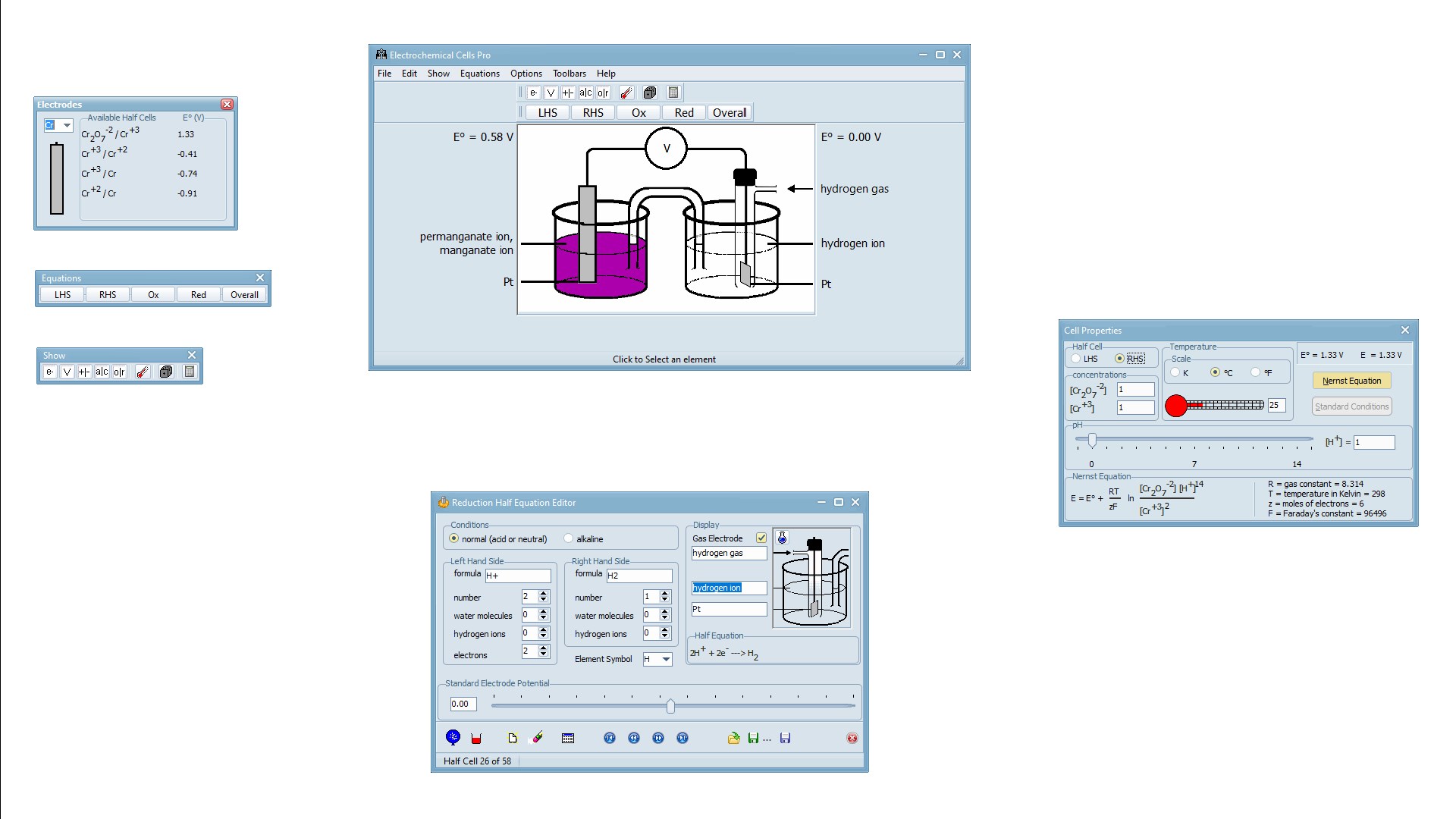 The Half Cell Editor makes it easy to enter any half equation.