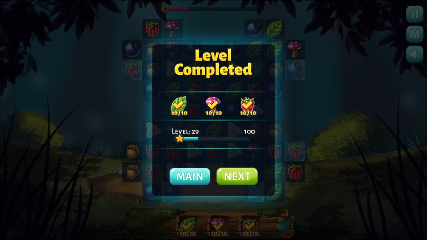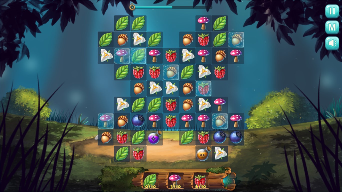 "Match 3: Magic Forest" is a game for rest, which refers to the games of "match 3" genre. You must collect three or more elements in one row, horizontally or vertically.