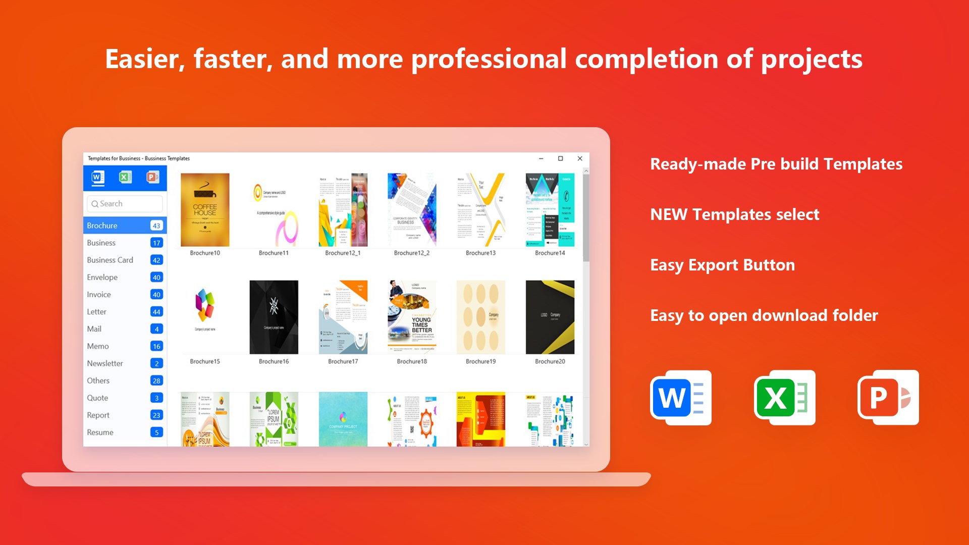 Ready-made Pre build TemplatesNEW Templates selectEasy Export ButtonEasy to open download folder