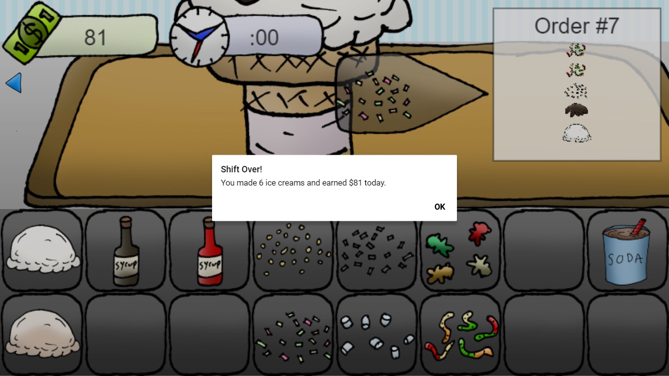 In Ice Cream Parlor, you start out your career as a young trainee in a local ice cream parlor. Build and serve ice cream dishes for your customers, make money, and work your way up through the ranks, eventually becoming a world famous ice cream chef!