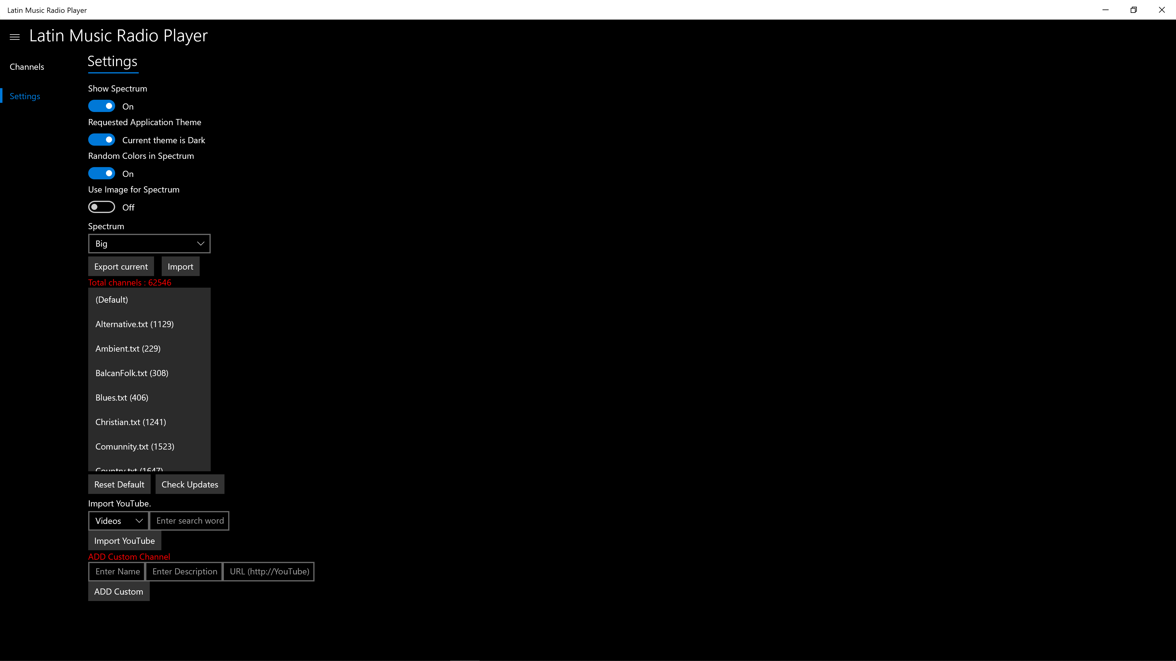 Added Custom channel under settings to merge with current station list. (Supports also YouTube).