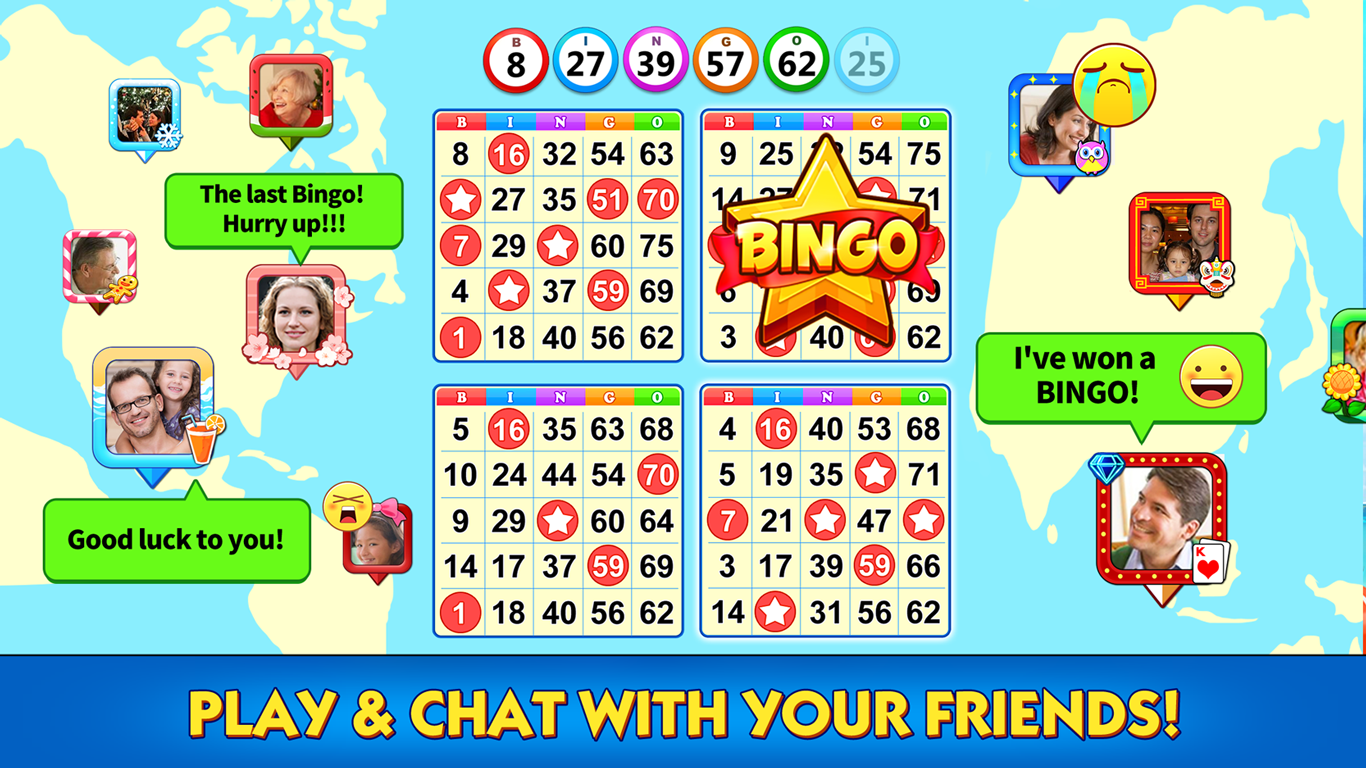 Play free bingo online with friends and family in Lucky Bingo, a fun and exciting bingo experience! Spin the wheel daily, enjoy FREE chips, use epic power-ups, and take on amazing mini-games to boost your bingo wins!