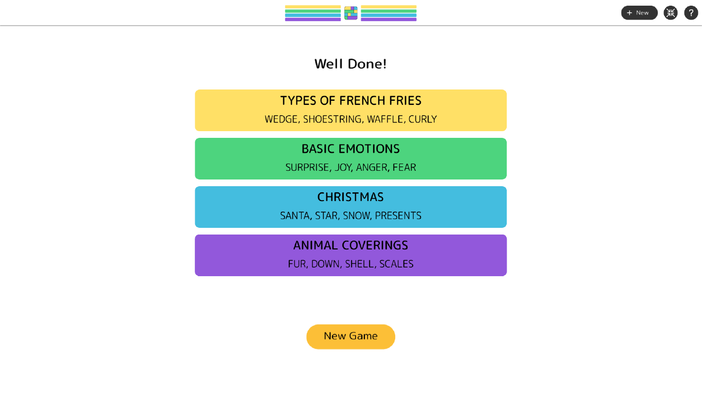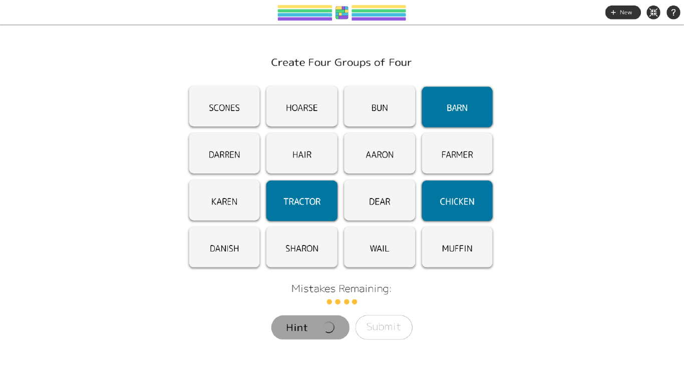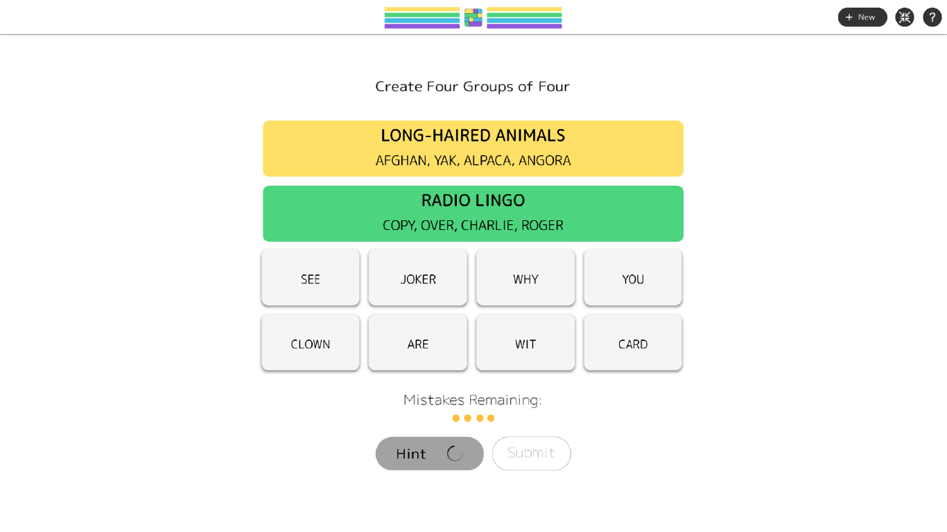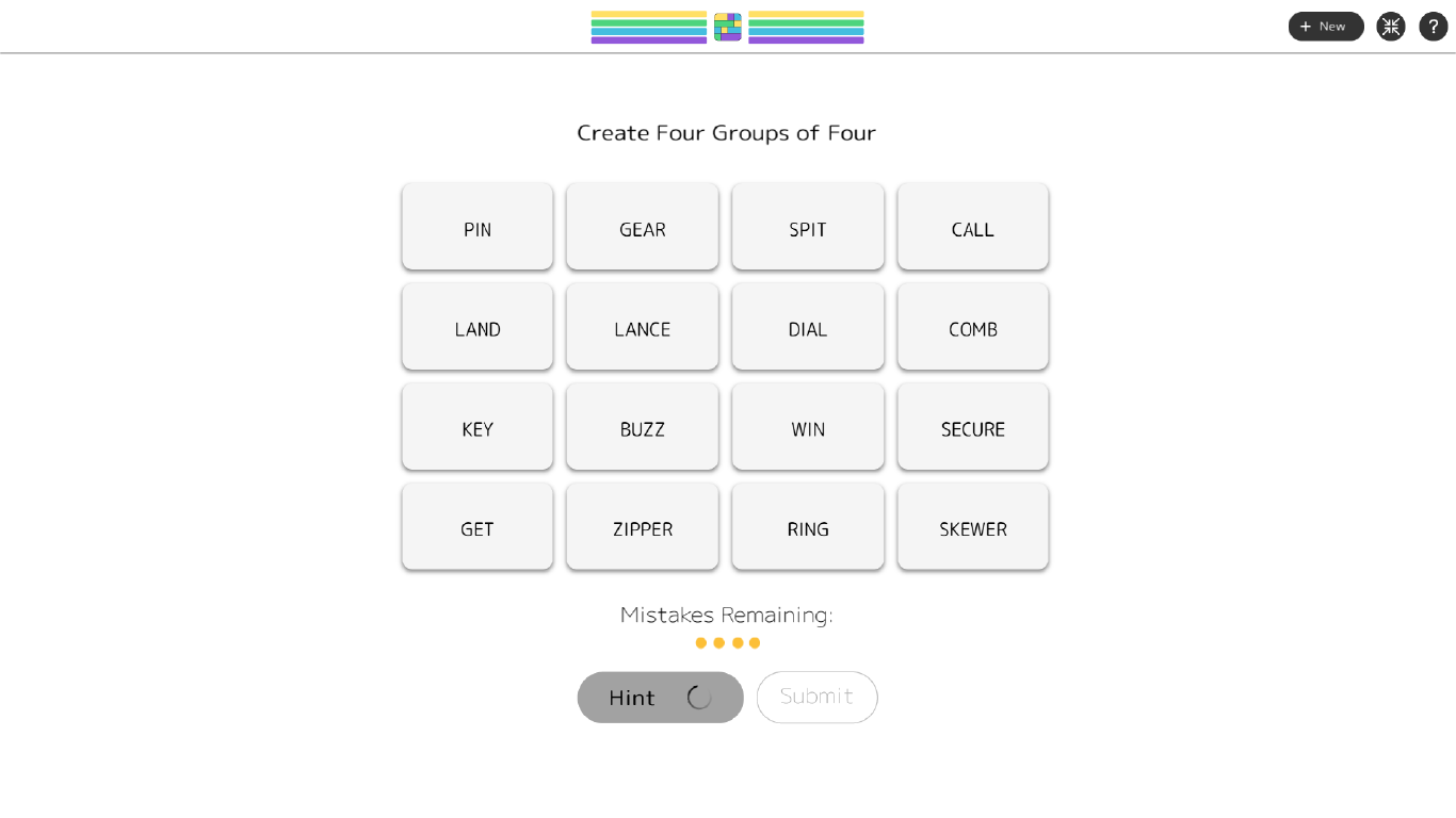 Find groups of words that belong together, submit your answer, and see if you're right. Stay sharp - too many mistakes, and you’ll have to try again!