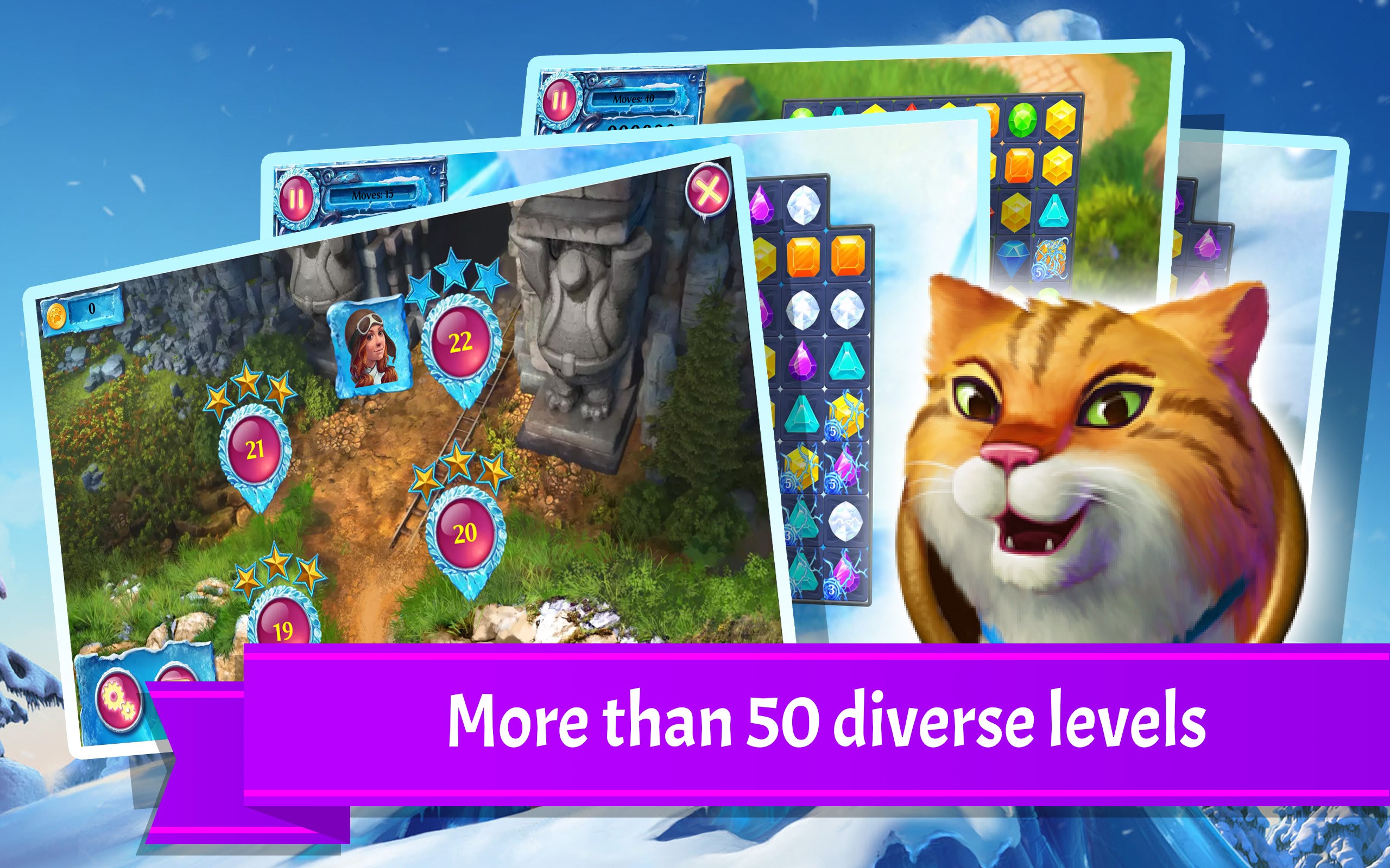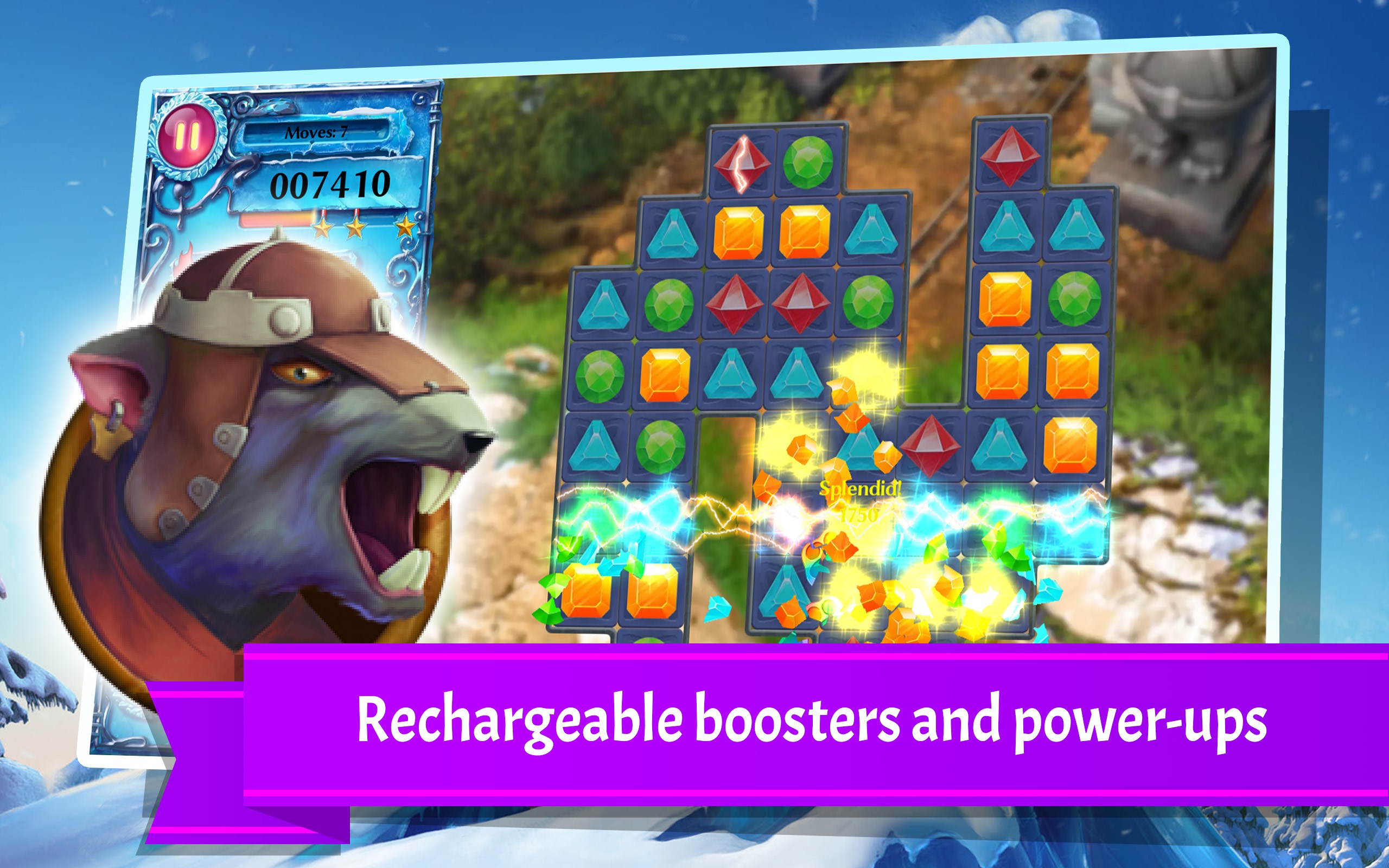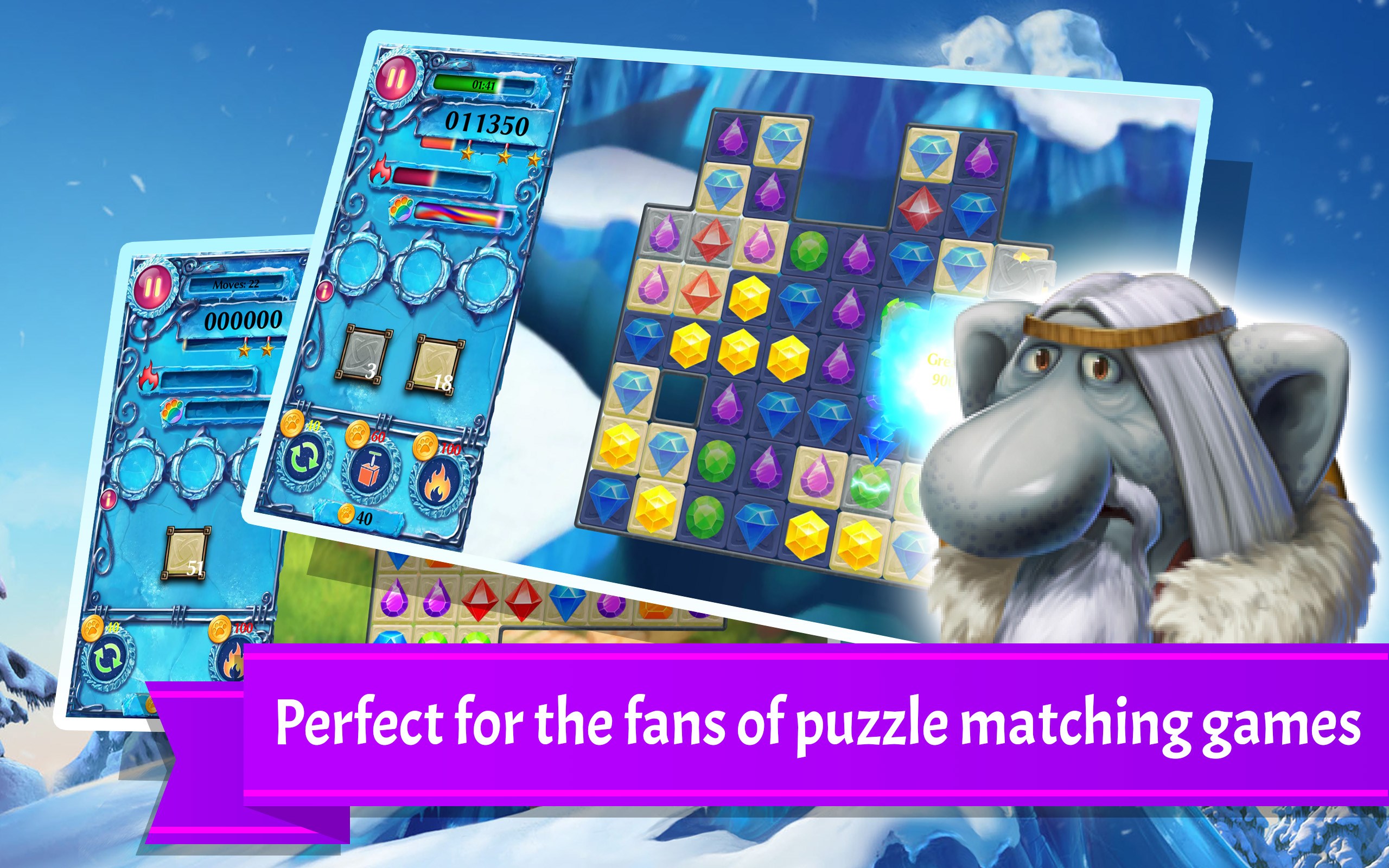 Collect chains of gems in search of Snow Crystals. Unleash the Ancient King's magic to save her pet from the clutches of belligerent beasts.