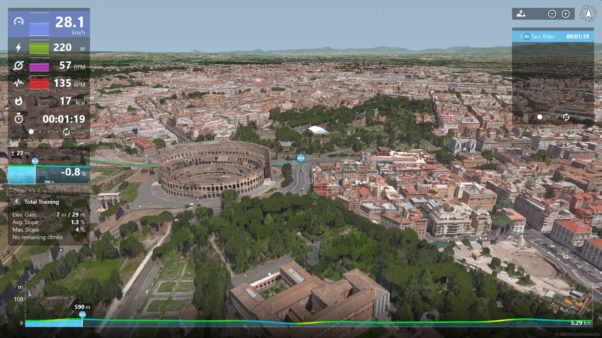 Play high quality Tacx FilmsRide with opponentsLive performance data (speed, cadence, power)GPS RidesStructured Workouts