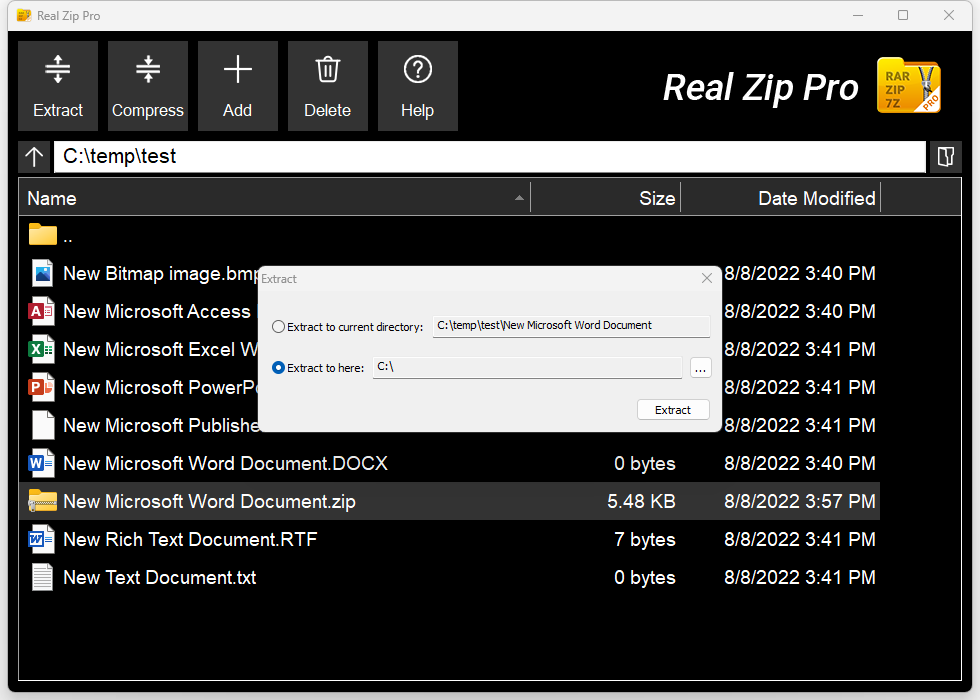 Real Zip Pro is a tool to extract archive files easy and fast. You can not only unarchive common formats such as ZIP, RAR, 7-Zip, TAR, Gzip, Pak and more, but also create new Zip files.