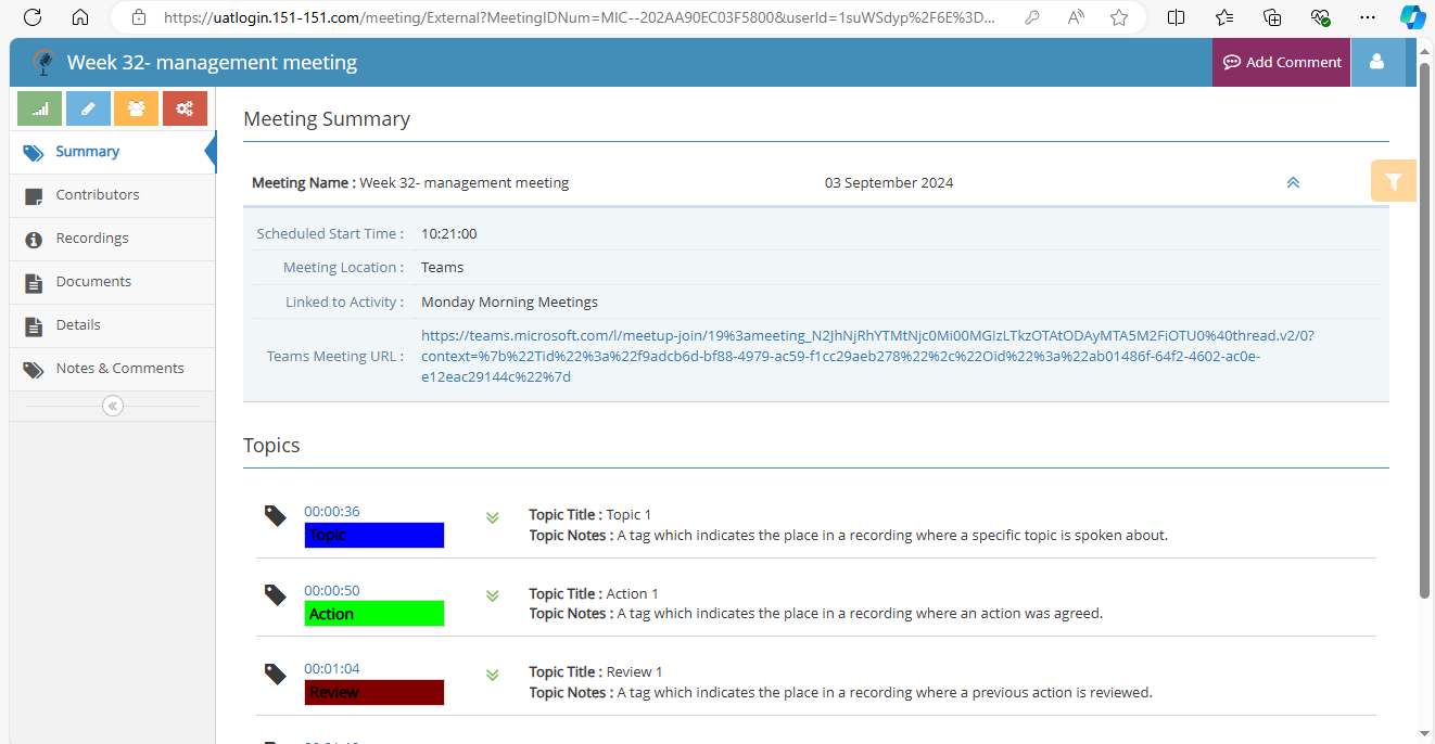 - Convenient functions that allow you to distribute the full meeting record to anyone you think appropriate or link the meeting record to an existing CRM or other database.