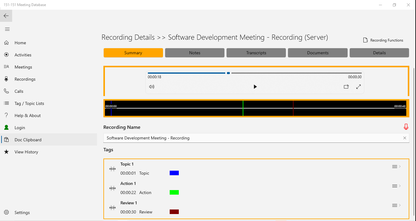 - A structured media file management database of all your recorded meetings and conversations.
