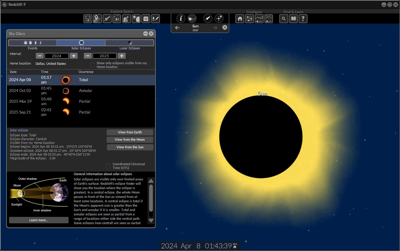 - A comprehensive Sky Diary lists events like eclipses, conjunctions and meteor streams, with observation info for your standpoint