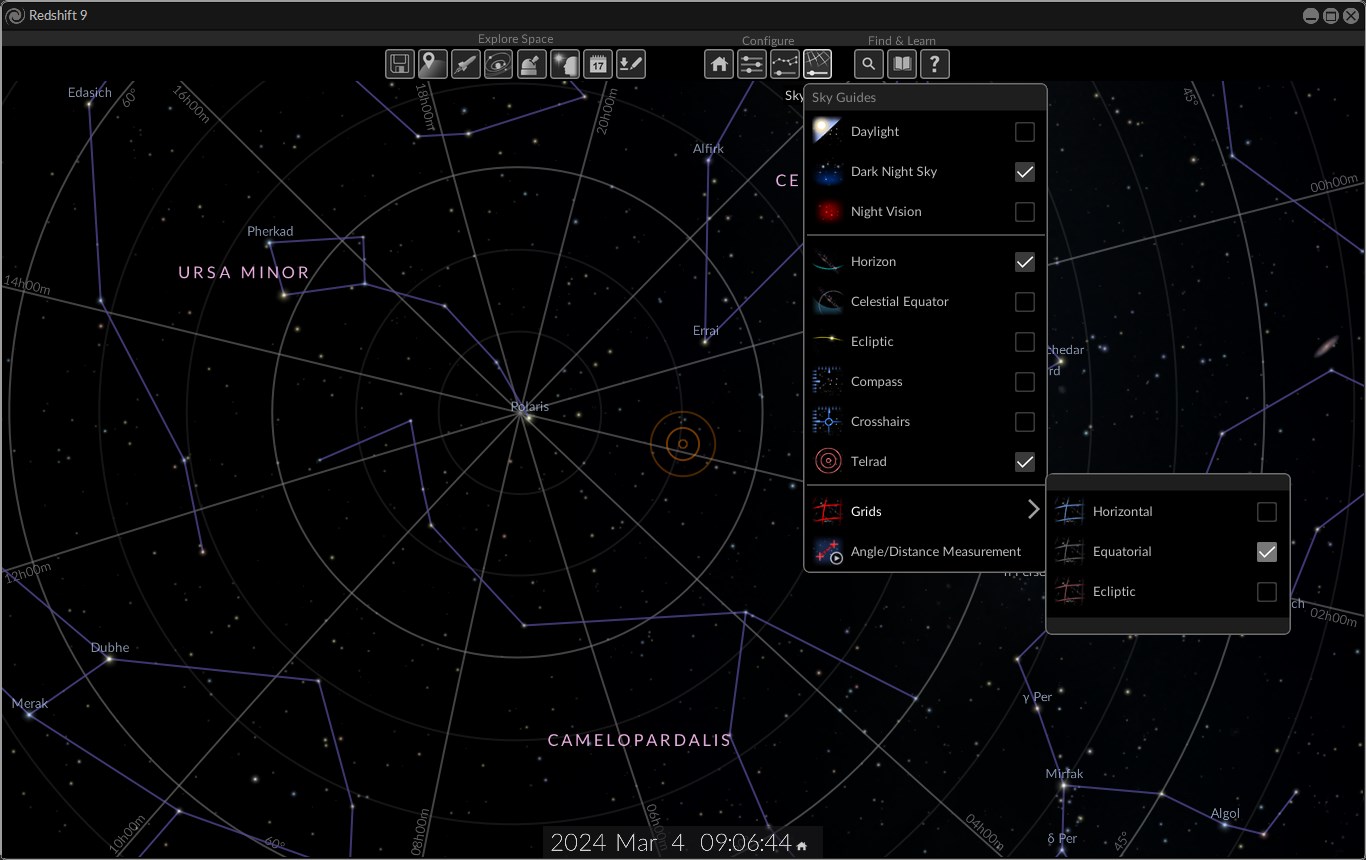 - Get supported by plenty of tools, like grids, sky guides, ecliptic and horizon lines, a compass, telrad rings and many more