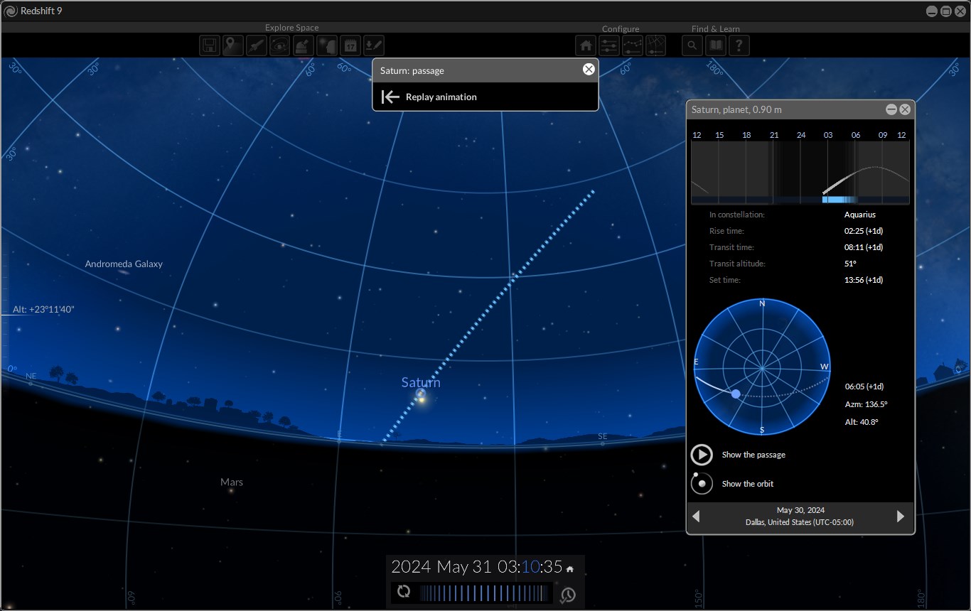 - Enjoy animated previews of the passage of any object over the night sky with just one click