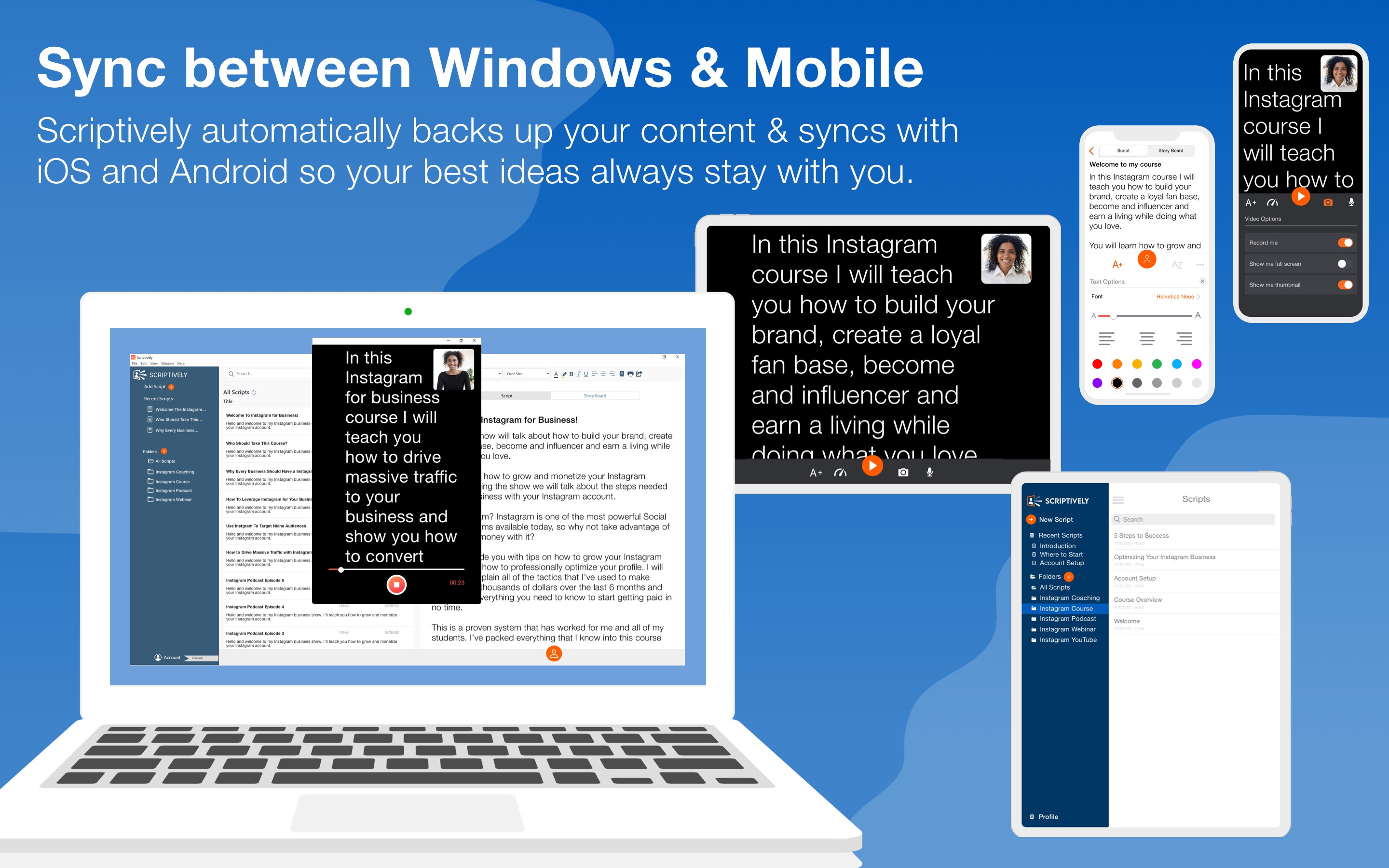 • Scriptively syncs across all your devices, so your best ideas stay with you.
