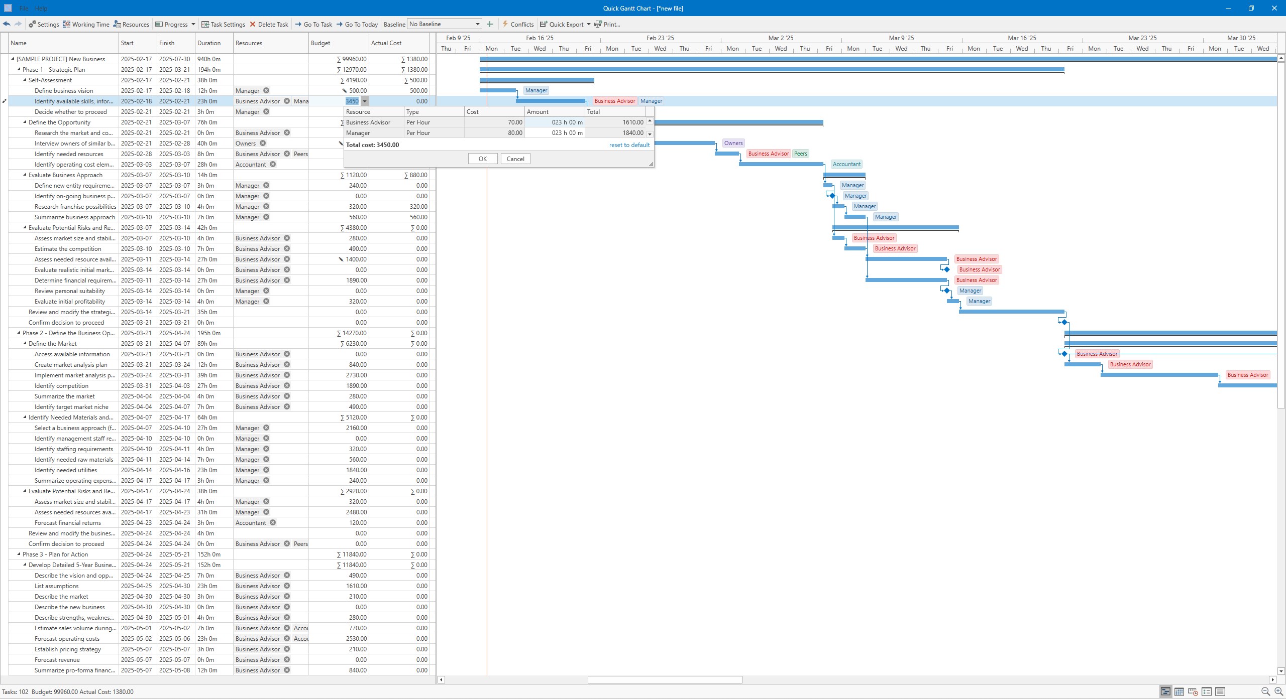 Manage project costs efficiently with budget-related options. Auto Budget Calculation automatically estimates task costs based on assigned resources.